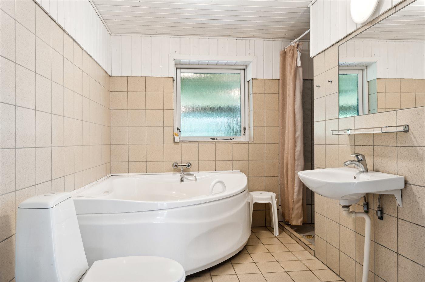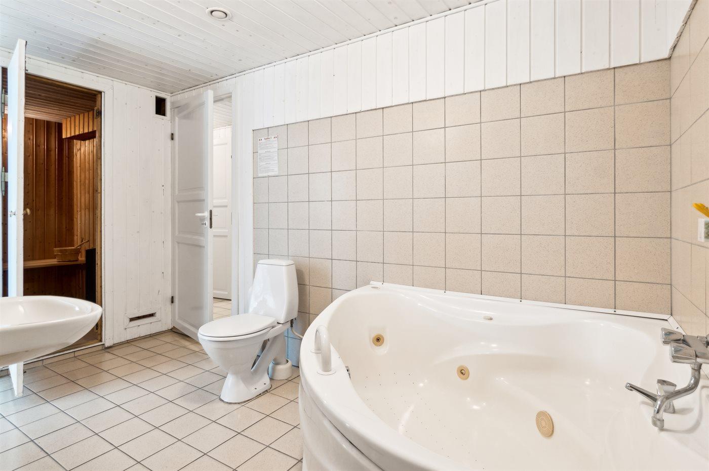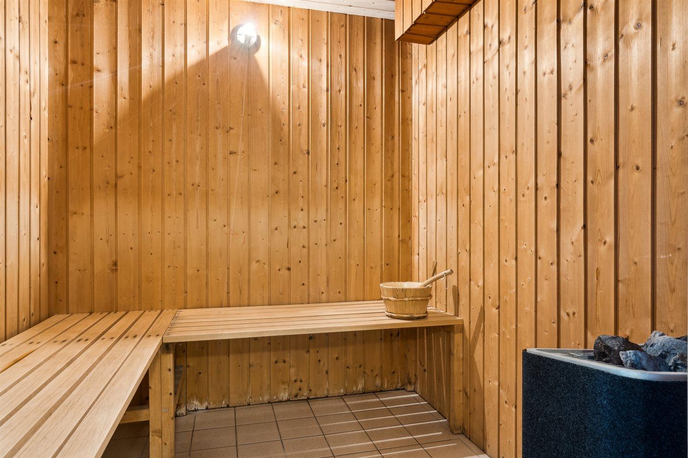 Der er 2 badeværelser med bruseniche og 2 toiletter. Der er gulvvarme på 2 badeværelser. I saunaen er der mulighed for afslapning.
