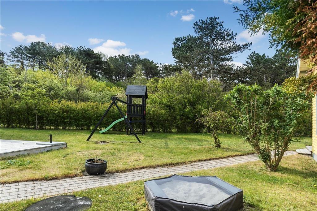 Den familievenlige have rummer både en shelter og et legetårn med gynge, rutsjebane og hus til de mindstes leg. I havepavillonen er der god plads til at indtage dagens måltider ved det store bord eller eftermiddagskaffen. Nyd de lange lyse nætter her og kik op på stjernerne gennem glastaget fra pavillonen, når mørket falder på. Husk en dag på den dejlige strand, hvorfra der også kan fiskes.
