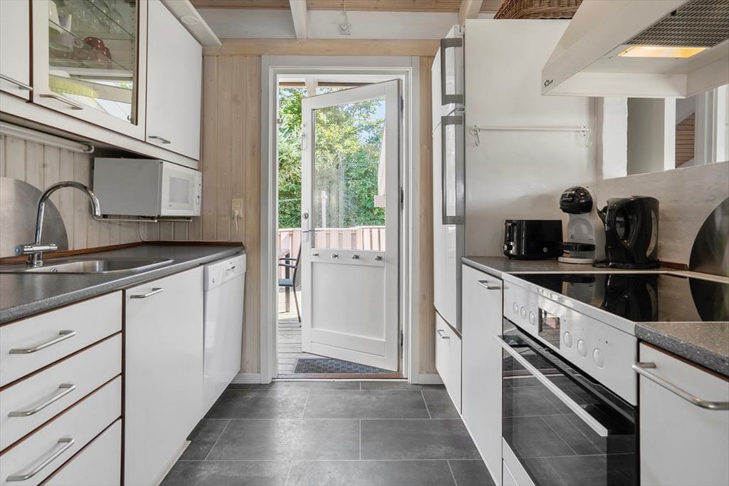 Sommerhuset har en stor træterrasse, som både er åben og overdækket, så der altid er mulighed for sol eller læ. Her er der rigelig plads til at samles om grillmiddage, nyde en kop kaffe i morgensolen eller læne sig tilbage i en liggestol. Terrassen er praktisk indhegnet, så børn og hunde kan løbe frit og trygt rundt. I haven er der god plads til leg og aktiviteter, og børnene kan more sig i sandkassen, på gyngen eller i legehuset. Et af højdepunkterne er uden tvivl det udendørs vildmarksbad, hvor I kan synke ned i det varme vand og nyde en helt særlig ferieoplevelse året rundt. Udelivet bliver hurtigt en naturlig del af ferien her, og terrassen med læ er det perfekte sted at samle familien.