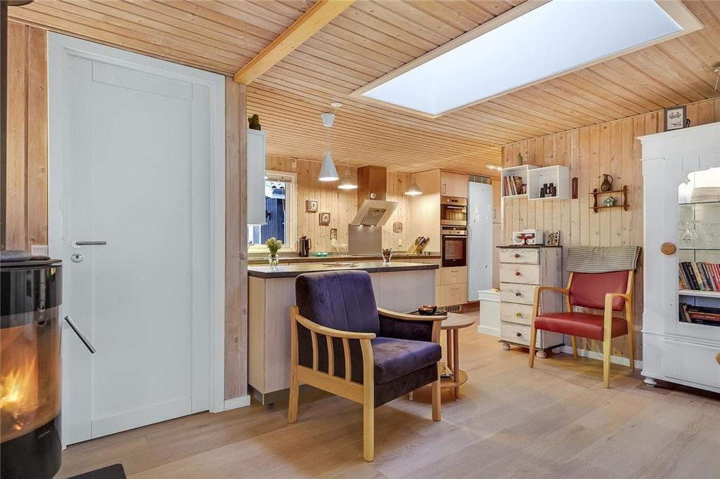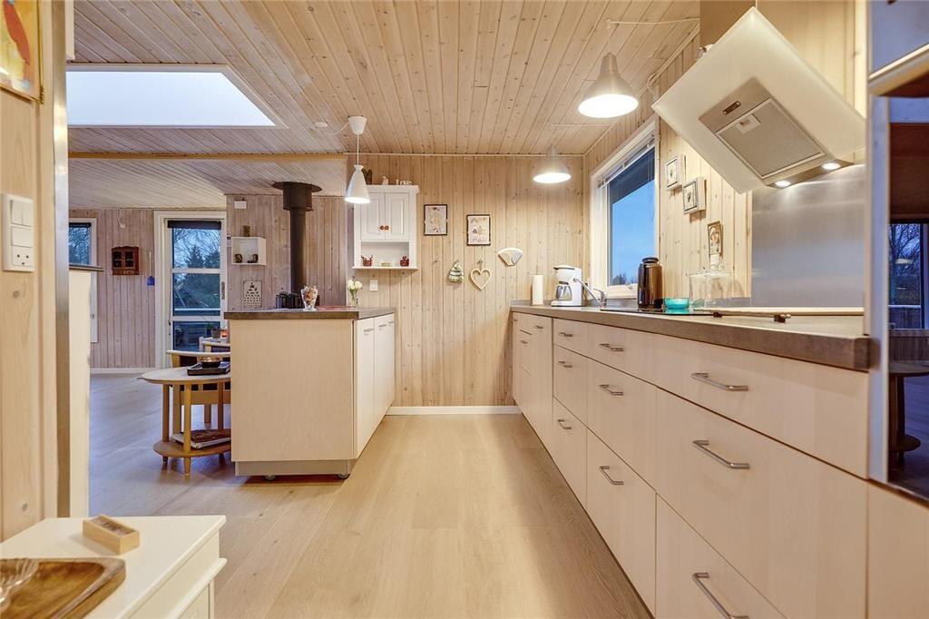 Vi byder her velkommen til det ideelle sted at holde ferie hvis du er til fred og ro i flotte omgivelser. Sommerhuset har et stort køkken/alrum, som er husets hjerte. Her er plads til, at hele familien kan samles om spisebordet eller i sofagruppen. Sommerhusets tv har både danske, tyske, norske og svenske tv-kanaler. På en kølig sommeraften kan sommerhuset opvarmes af varmepumpe og brændeovn. I åben forbindelse med stue og spiseplads ligger husets køkken. Et moderne køkken med alt i hårde hvidevarer. Desuden 2 soverum, begge med dobbeltseng. Et 3. soverum som ligger i åben forbindelse med stuen, uden dør indtil soverummet, men dog afskærmet. Her er også dobbeltseng. Desuden nydeligt badeværelse med brus og vaskemaskine. Til de mindste er der både barneseng og barnestol.