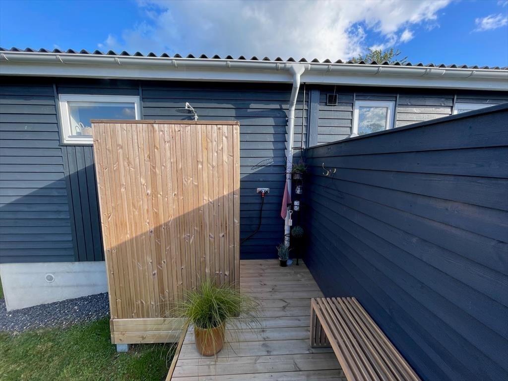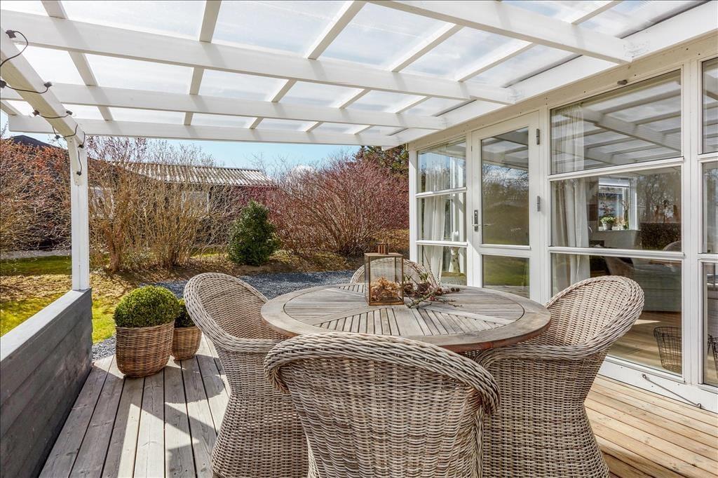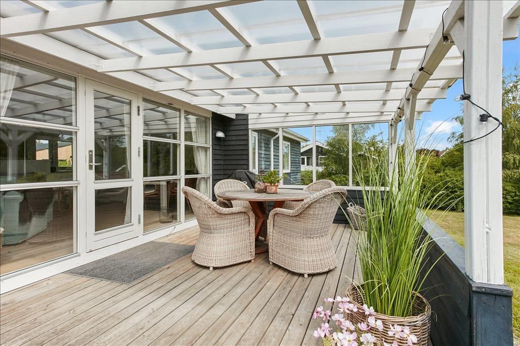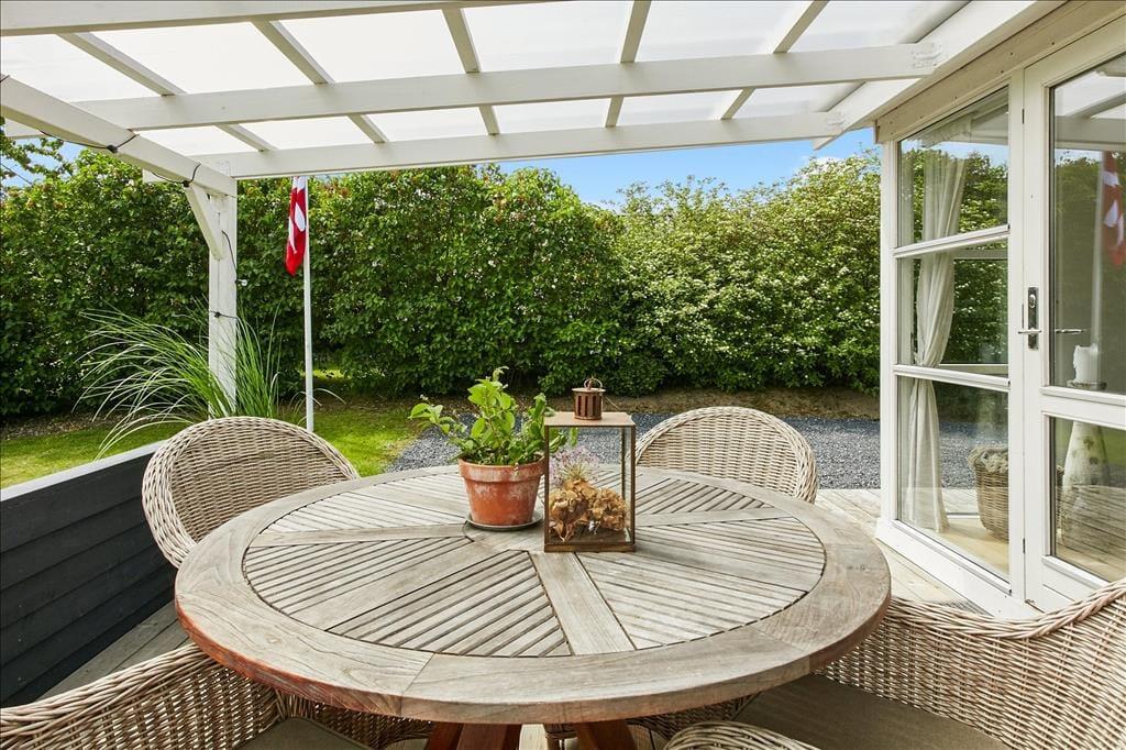 Dette sommerhus ligger skønt placeret på en dejlig grund. De fleste steder i og omkring huset kan I opholde jer ugeneret under jeres ophold. Husets terrasser, som er både åbne og overdækkede, vil hurtigt blive jeres yndlingssted, hvor familien og venner kan samles, snakke, slappe af og bare nyde tiden med hinanden. Her er der mange fine havemøbler, loungemøbler, en parasol og fin Weber kulgrill, hvor I kan tilberede jeres ferie-måltider.