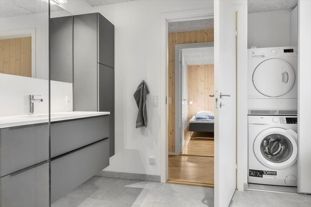 I husets badeværelse er der en lækker spa samt en stor bruseniche. Der er både vaskemaskine og tørretumbler i huset.