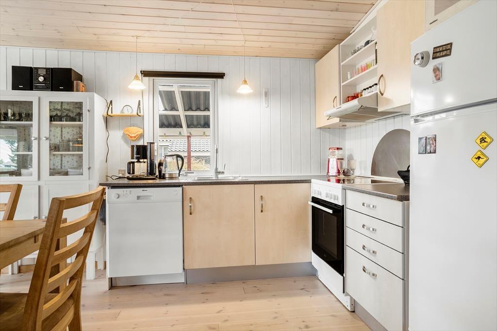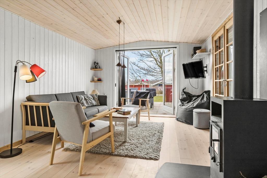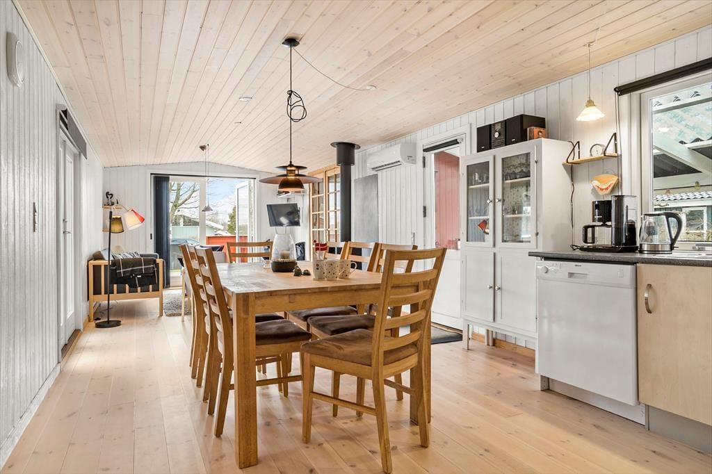 Her findes autentisk sommerhus stemning i det fint indrettede hus. Huset er indrettet med 2 soverum i huset samt 1 soverum i anneks med egen indgang. I det lyse køkken/alrum med brændeovn er der masser af muligheder for hygge og samvær. På badeværelset findes der både bruseniche, spa og sauna. Værelserne er lyse og hyggelige. I gangen findes vaskefaciliteter.