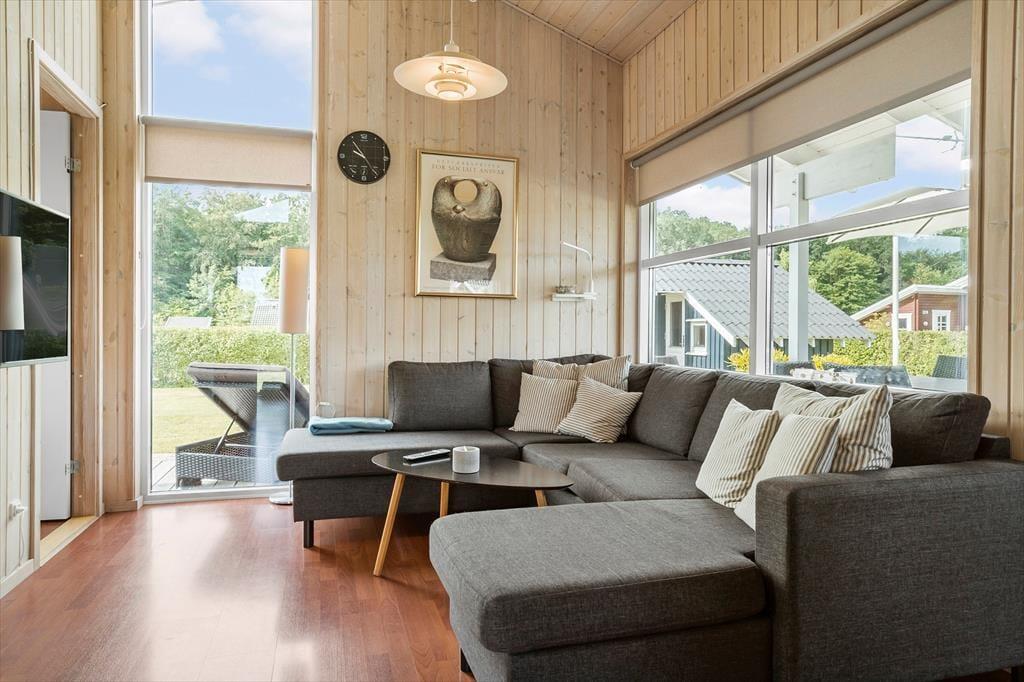 I sommerhuset er der en hyggelig stue, som giver en dejlig og afslappet atmosfære. Her kan I slappe af på sofaen og se tv med huset tv-kanaler eller læse en bog. Fra stuen er der direkte adgang til en delvis overdækket terrasse, hvor I kan grille og spise aftensmad.