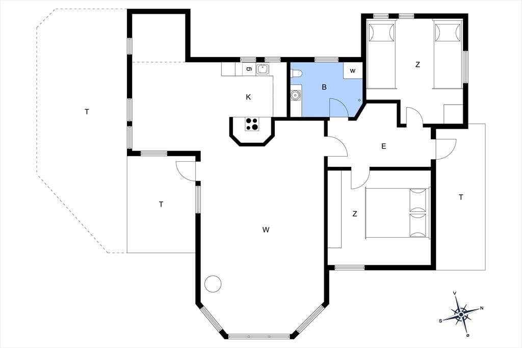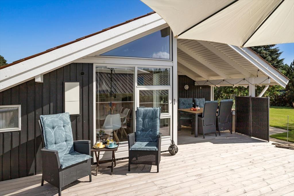 Sommerhuset design af køkken, spiseplads, alkove og stue giver en dejlig og afslappet atmosfære. Denne kombination skaber en behagelig forbindelse mellem madlavning og samvær, så du kan deltage i samtaler med familien eller venner, mens maden tilberedes. I stuen kan I slappe af på sofaen og se tv eller læse en bog. Fra stuen er der direkte adgang til en delvis overdækket terrasse, hvor I kan grille og spise aftensmad.