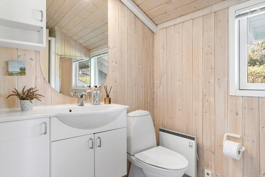 Sommerhuset er indrettet med entré hvor der er mulighed for at hænge jakken og stille skoene til siden. Fra entreen er der adgang til sommerhusets værelser og for enden af gangen kommer husets hjerterum, det hyggelige køkken-alrum der ligger i åben forbindelse med stuen.