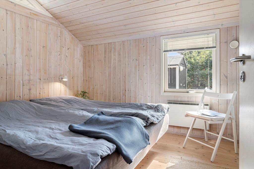 Desuden er der to velindrettede soveværelser, en med dobbeltseng og skabsplads, og et med 2 enkelte senge og et enkelt skab. Der er desuden et badeværelse med vaskemaskine.