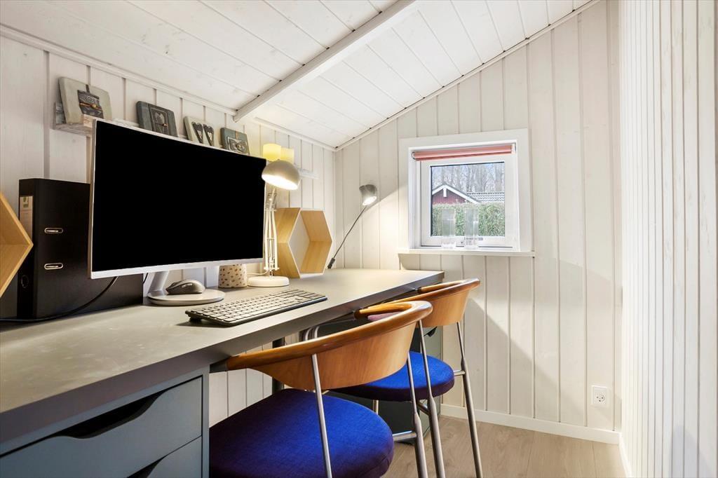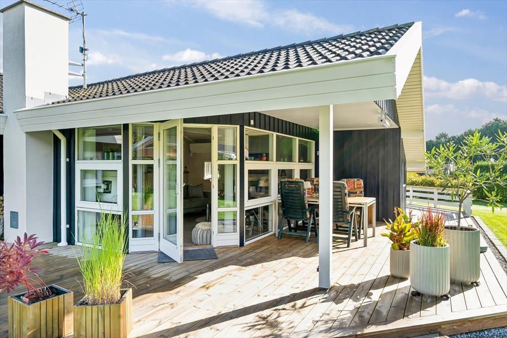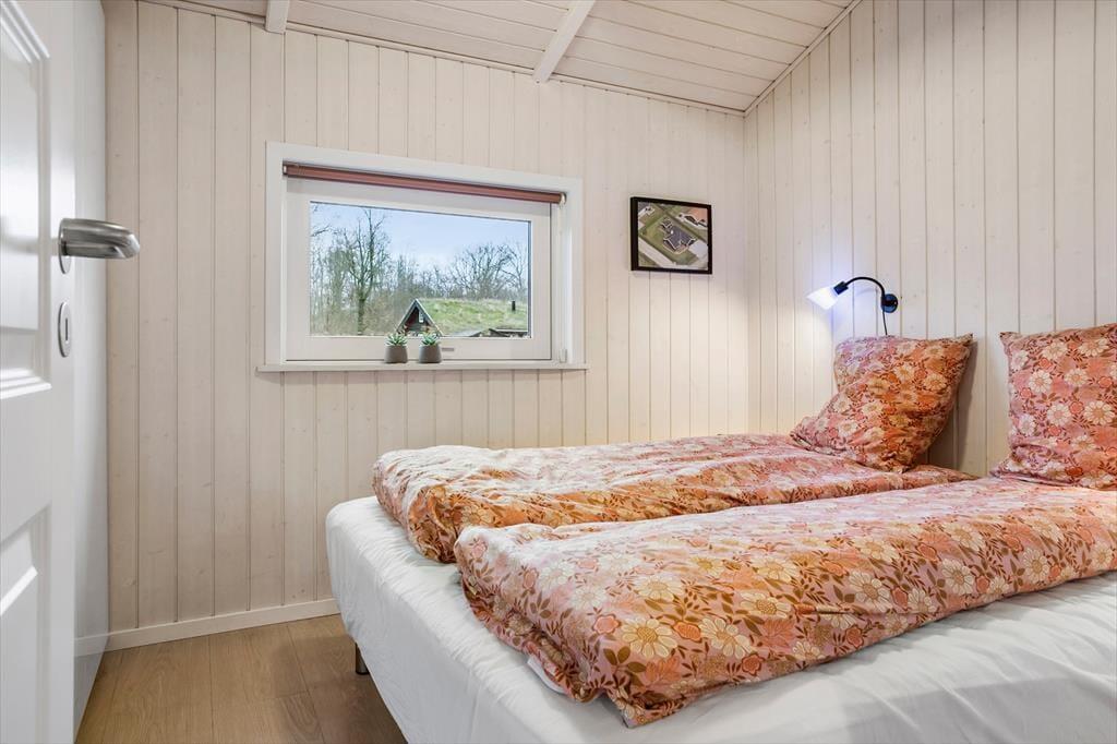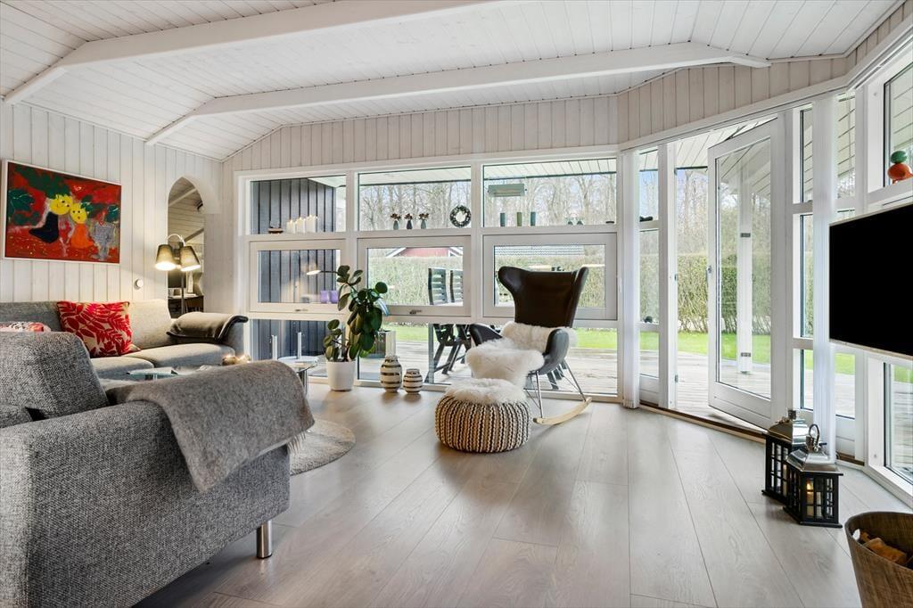 Når I træder ind i sommerhuset, mærker I straks den hyggelige atmosfære og fornemmelsen af, at her er plads til at nyde ferien sammen. De store, sydvendte vinduer lukker masser af lys ind og skaber en smuk forbindelse mellem husets rum og haven udenfor. De lyse trævægge giver en skøn sommerhusstemning, der danner rammen om en fremragende ferieoplevelse.