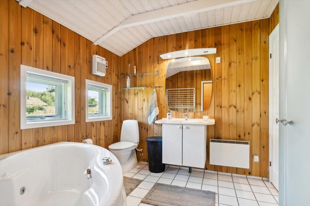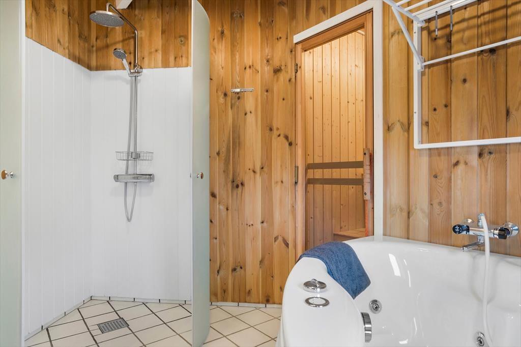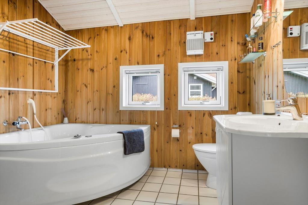 Sommerhuset har tre indbydende soveværelser med plads til op til seks personer. To værelser er indrettet med dobbeltsenge, mens det tredje har en dobbeltsovesofa. Badeværelserne er rummelige, og det største er udstyret med både spa og sauna – ideelt til afslapning efter en dag fyldt med oplevelser. Der er også vaskemaskine og tørretumbler i huset, så praktiske gøremål klares nemt under opholdet.