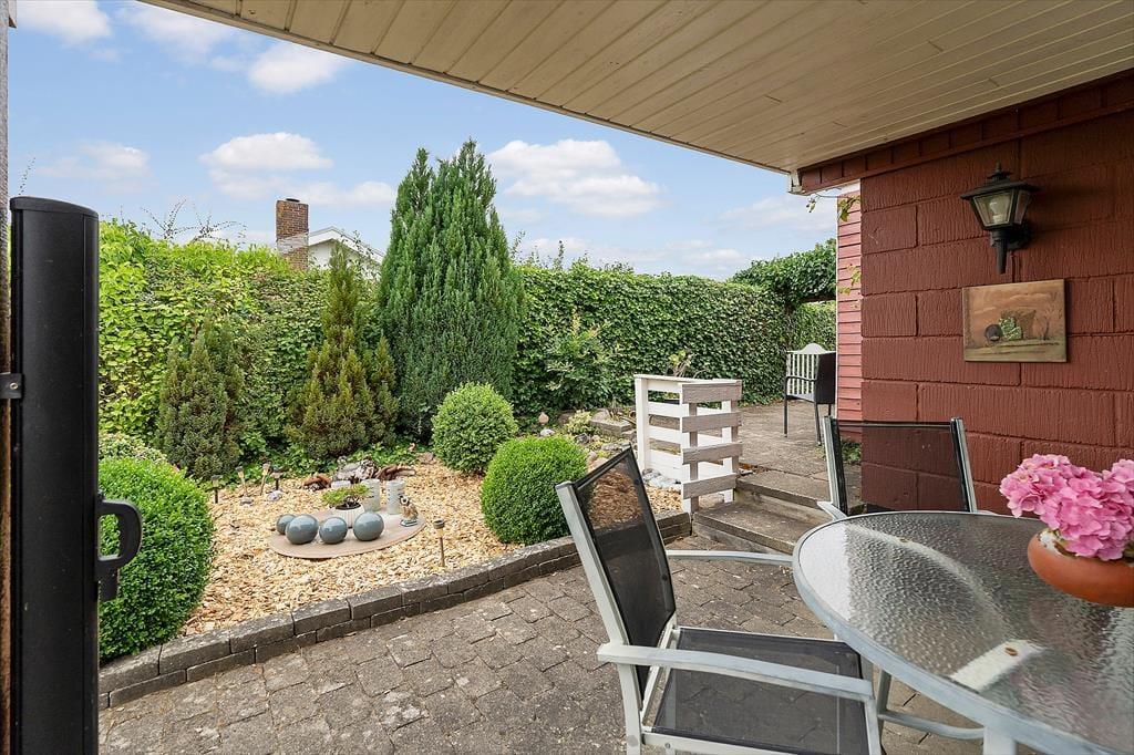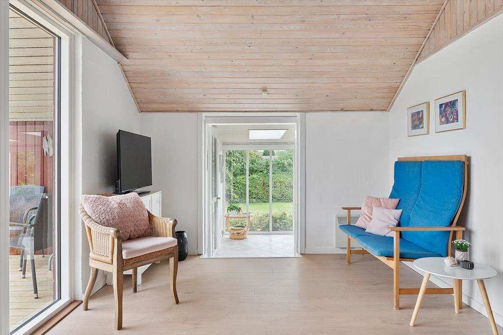 Sommerhuset ligger få minutters gang fra stranden, og udenfor venter en stor have, klar til at blive udforsket og nydt i fulde drag. Den overdækkede udestue eller terrassen indbyder til lange aftener med grillmad og samtaler under stjernerne. Alt er skabt for at lade dig koble af og finde ro i øjeblikket, mens du nyder alt, hvad sommerhuslivet har at tilbyde.