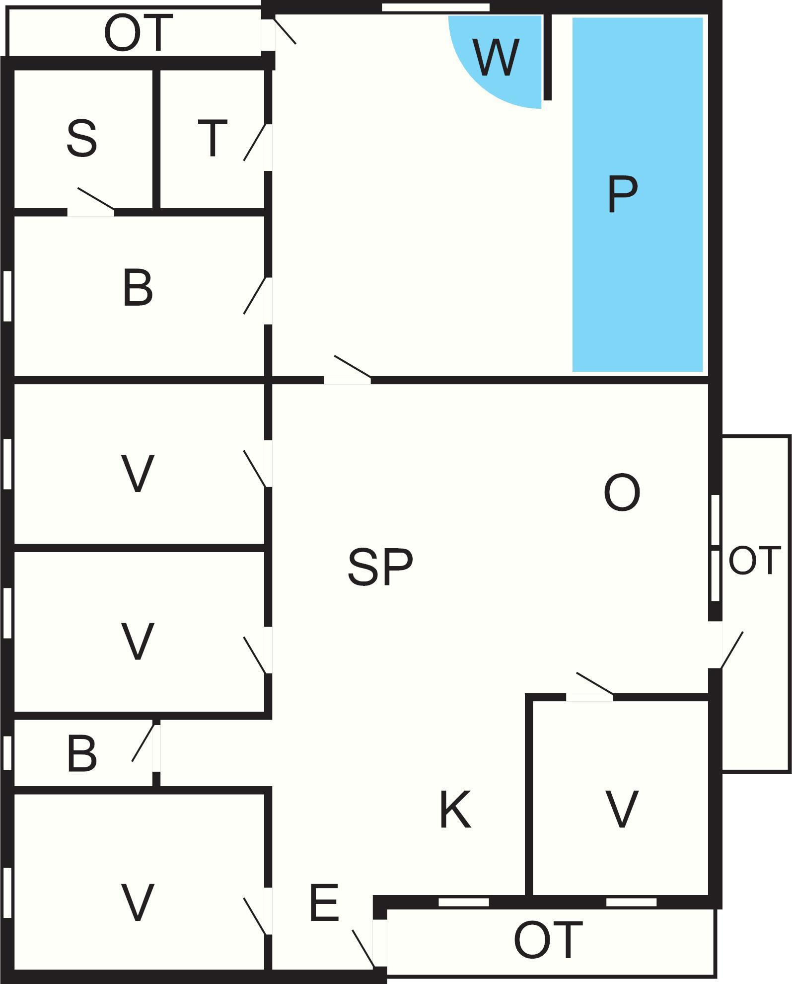 Sommerhuset er praktisk indrettet med gode værelser, stort køkken-alrum, to badeværelser og et poolrum med spabad og sauna.