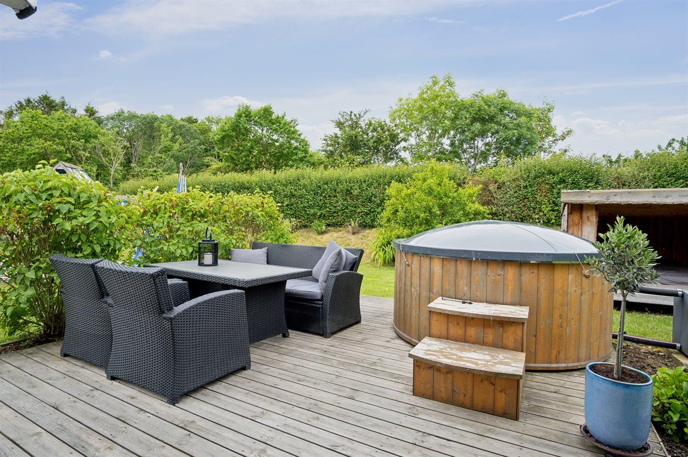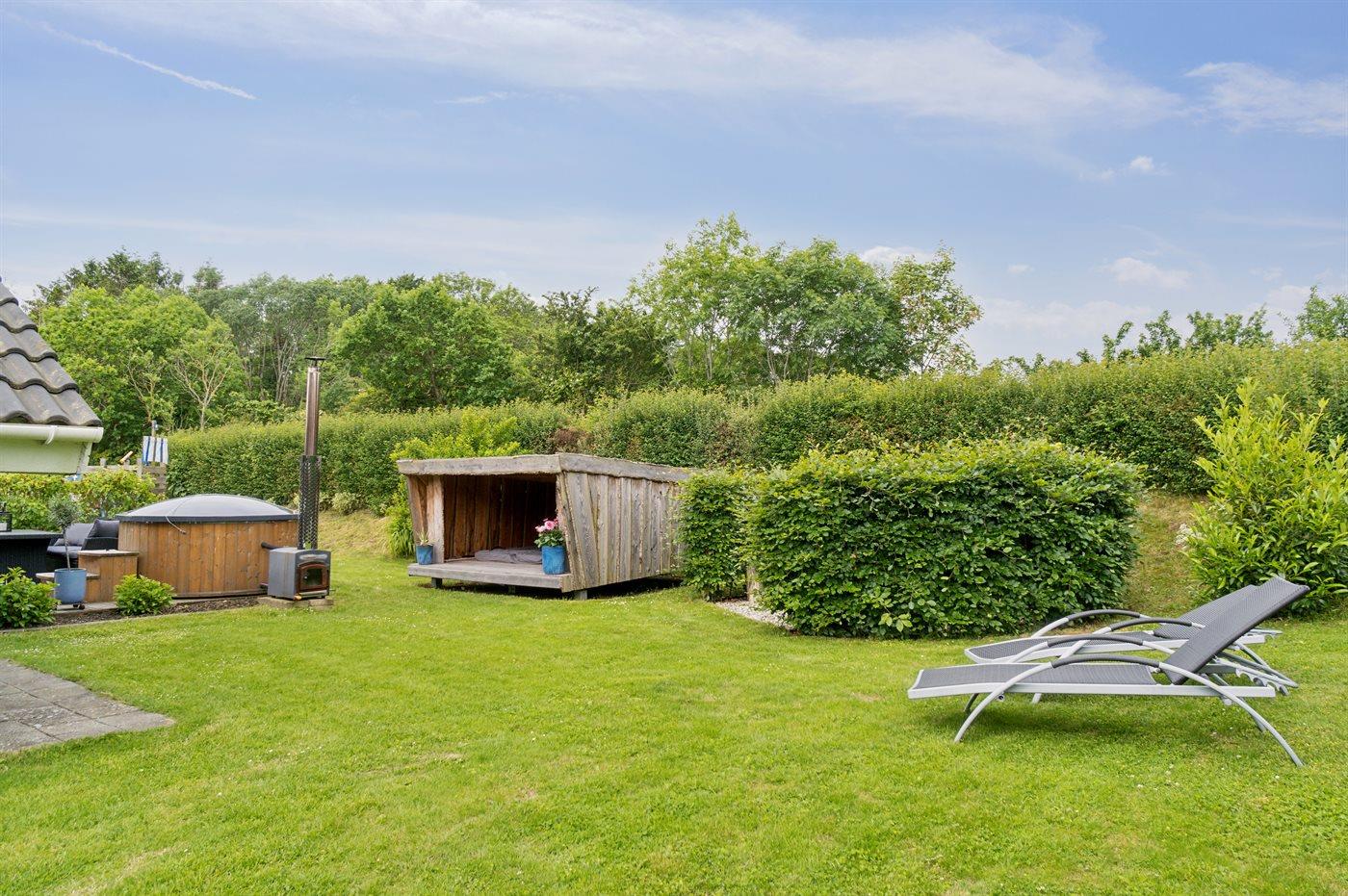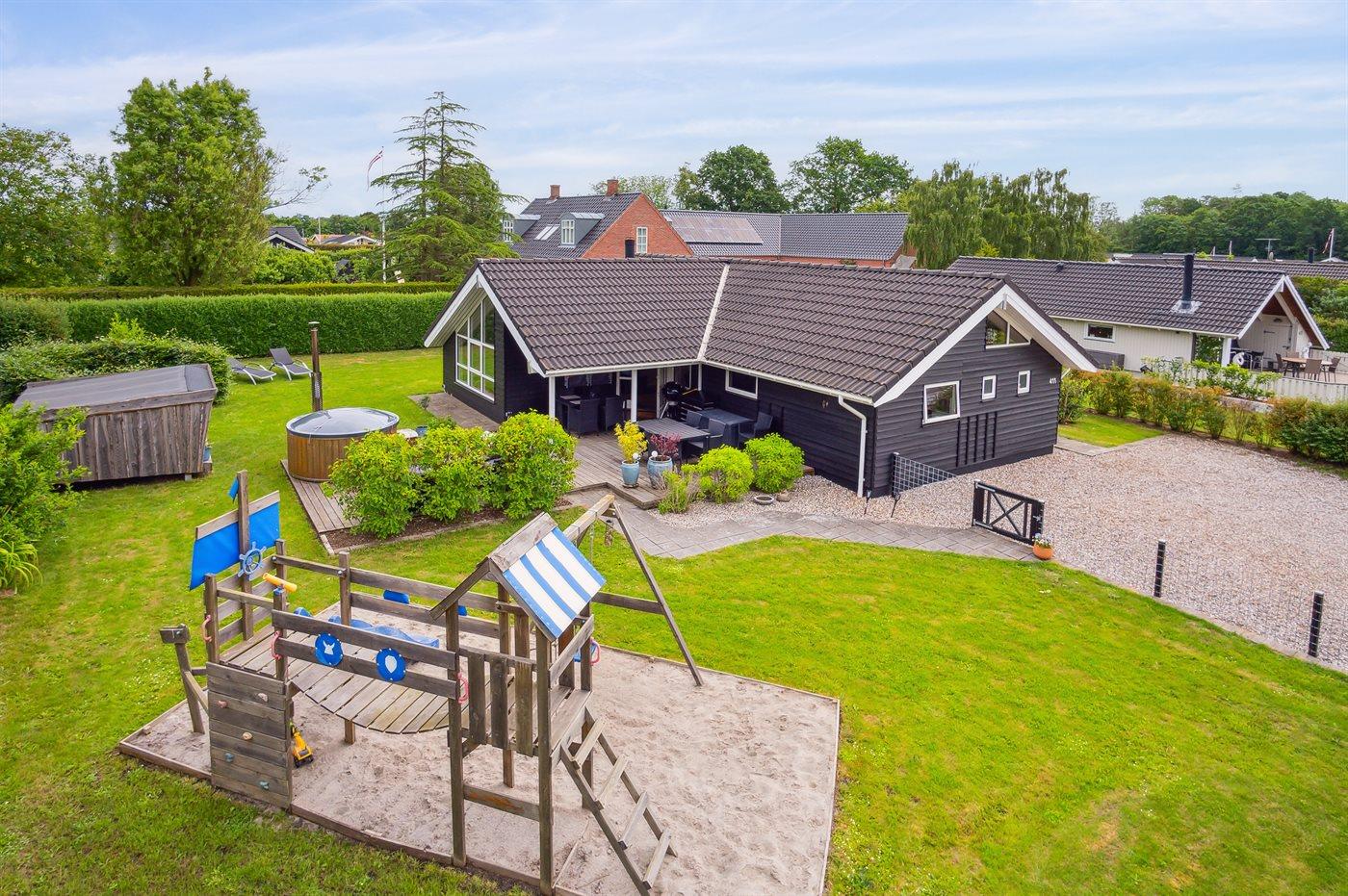 Sommerhuset er beliggende helt ugenert og med en skøn have indeholdende bl.a. et hyggeligt bålsted og legefaciliter samt ikke mindst et vildmarksbad på terrassen, hvor hele familien kan slappe af og nyde ferien. Sommerhuset byder på dejlige terrassearealer, som også er delvist overdækket, således det altid er muligt at finde et læfyldt hjørne, hvor man kan nyde solen.