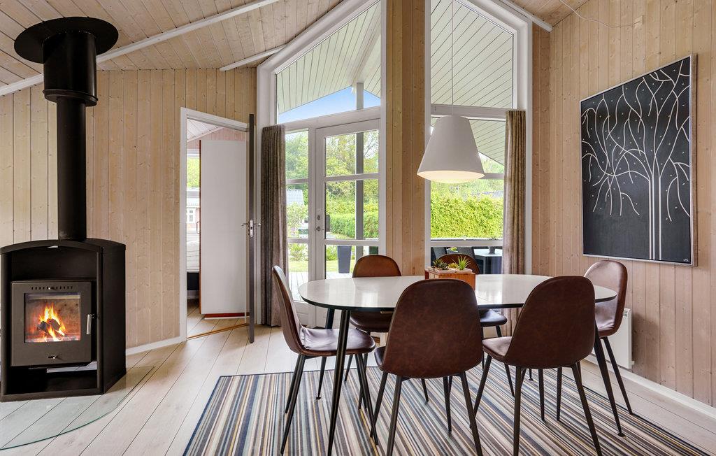 Velkommen til et dejligt hus med en rummelig opholdsstue, hvor I kan samles til alle hyggestunderne. Brug det moderne, fuldt udstyrede køkken til at lave feriens måltider sammen og dæk derefter op til middagen på spisebordet. Stuen har et godt lysindfald fra flere vinkler, og hvis det er køligt, kan I tænde op i brændeovnen. Prikken over i'et er spabadet og saunaen, hvor I kan læne jer tilbage efter dagens udflugter.