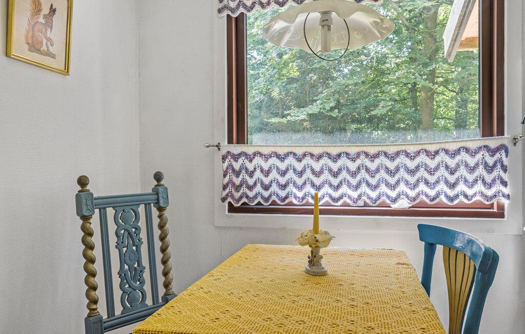 Beliggende i et smukt naturområde og landlig idyl tilbyder dette hyggelige træhus jer de ideelle rammer til at trække stikket og slappe af i de rolige omgivelser. Glæd jer til den nostalgiske indretning af huset, som skaber en varm og indbydende stemning. Nyd dagens første kop kaffe, mens I nyder udsigten til den grønne have gennem de store vinduespartier. Opholdsstuen med brændeovnen sikrer hyggelige aftener sammen. På terrassen kan I slappe af i den friske luft. Nyd de lune sommeraftener med grillmad og kølig vin på bordet.