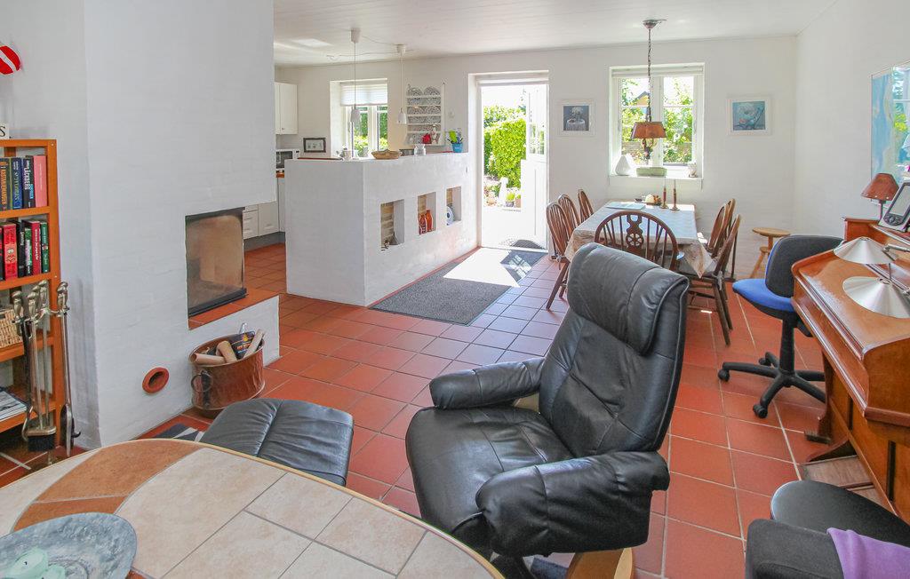 Huset er det ideelle sted for en afslappende ferie med jeres kære, og her kan I også tage hunden med. Den hjemlige atmosfære vil straks fortrylle jer, og møblerne er nøje udvalgt og sammensat for at sikre, at I kan tilbringe en dejlig tid sammen her. Glæd jer til at samles om måltider i spiseområdet i stuen. Efter en aktiv dag på øen kan I slappe af i badekarret. Om aftenen udstråler brændeovnen en beroligende varme og en hyggelig atmosfære.