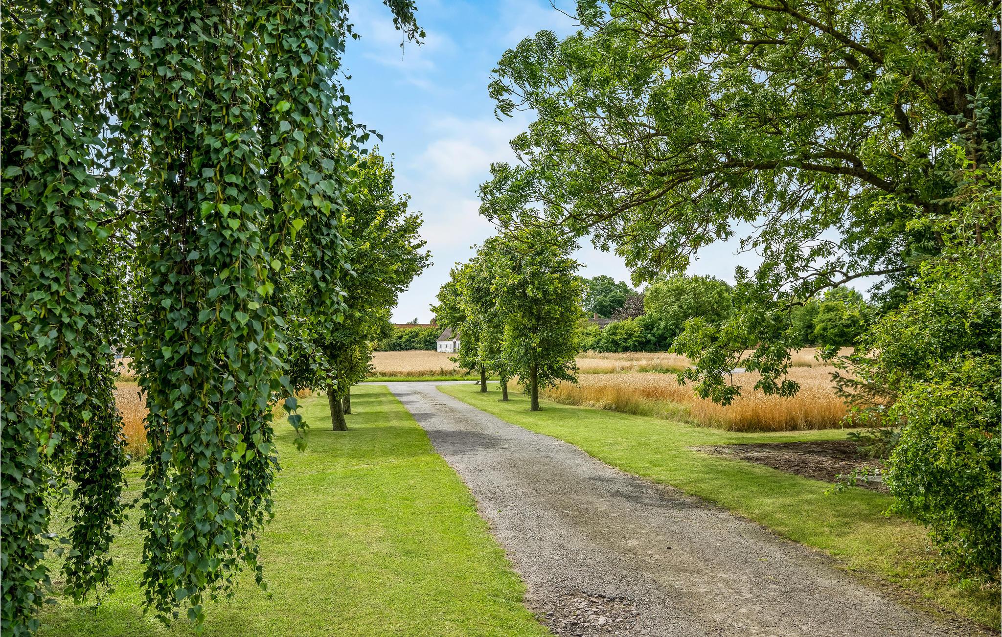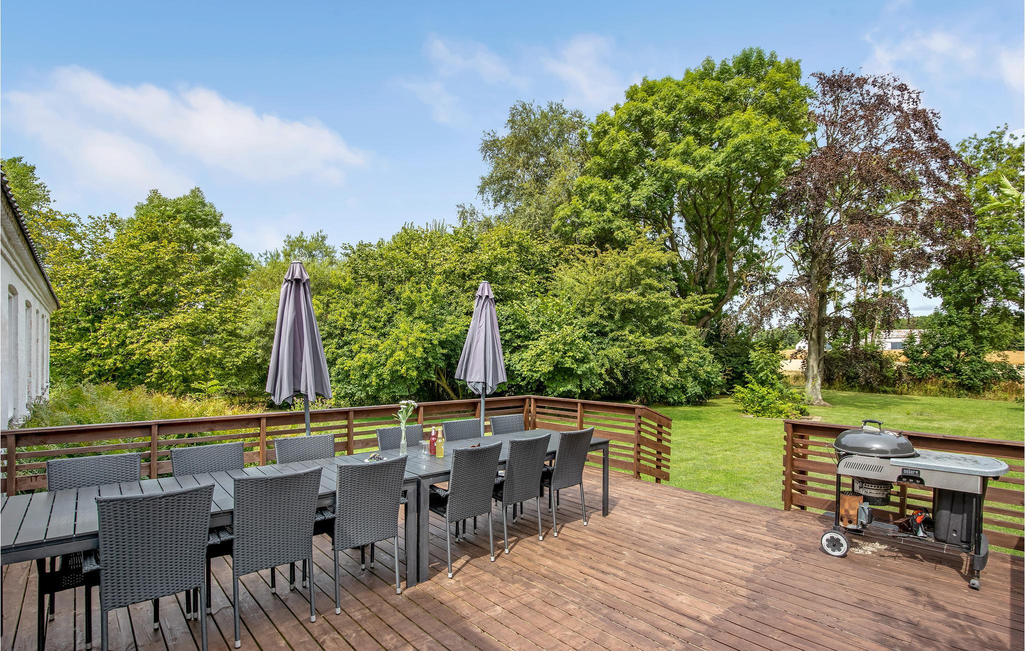 Fra stuen har I udgang til en træterrasse og en stor og parklignende have med god plads til leg og boldspil. Her finder I også en lille sø.