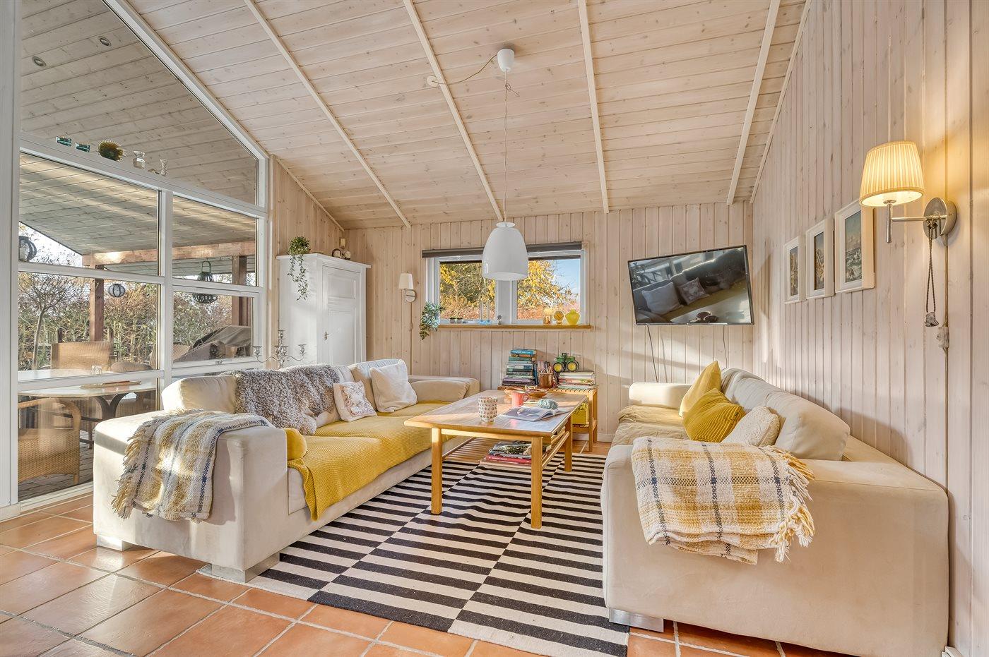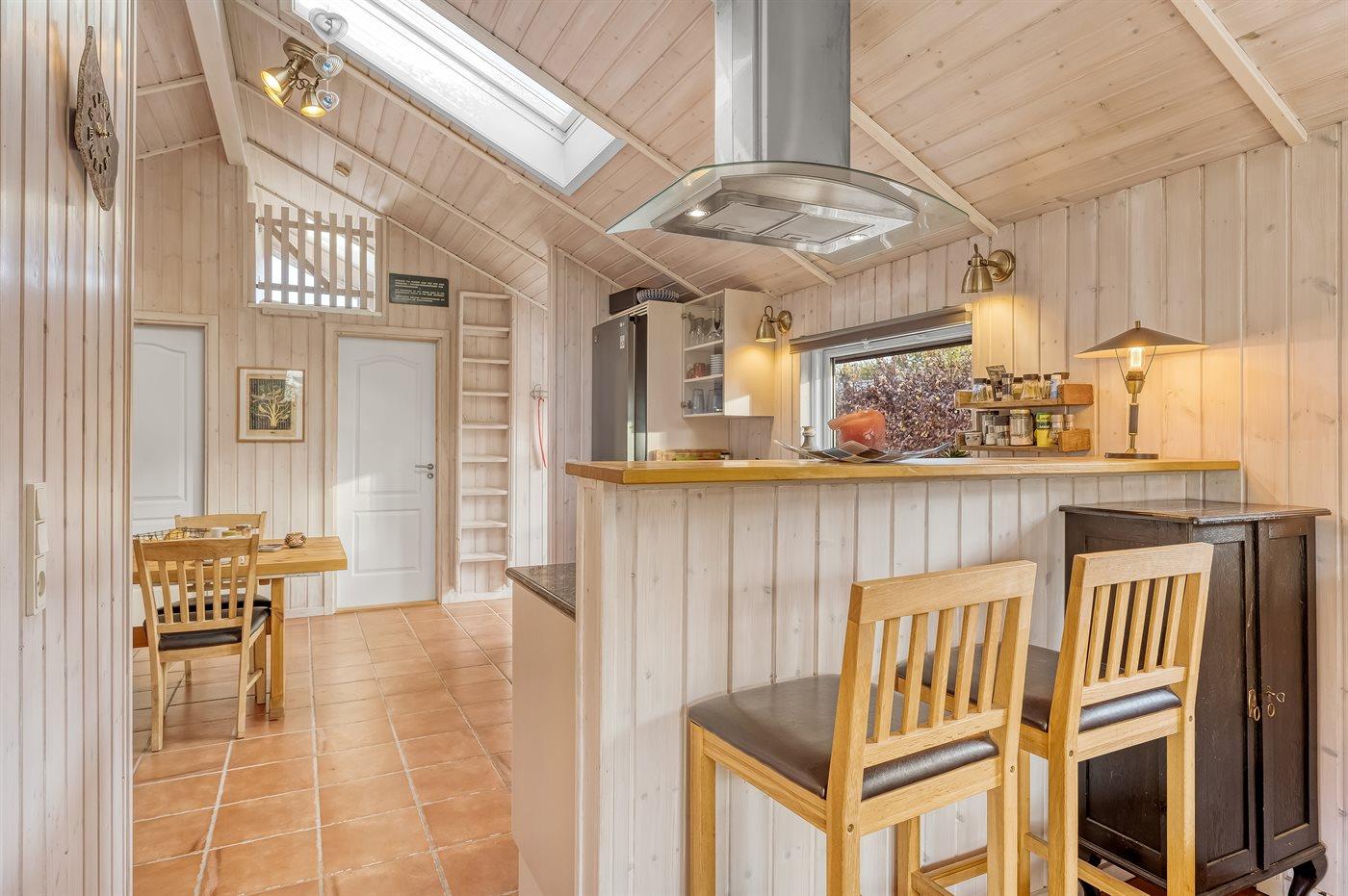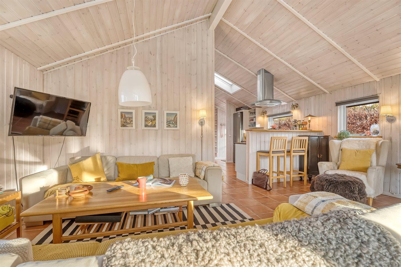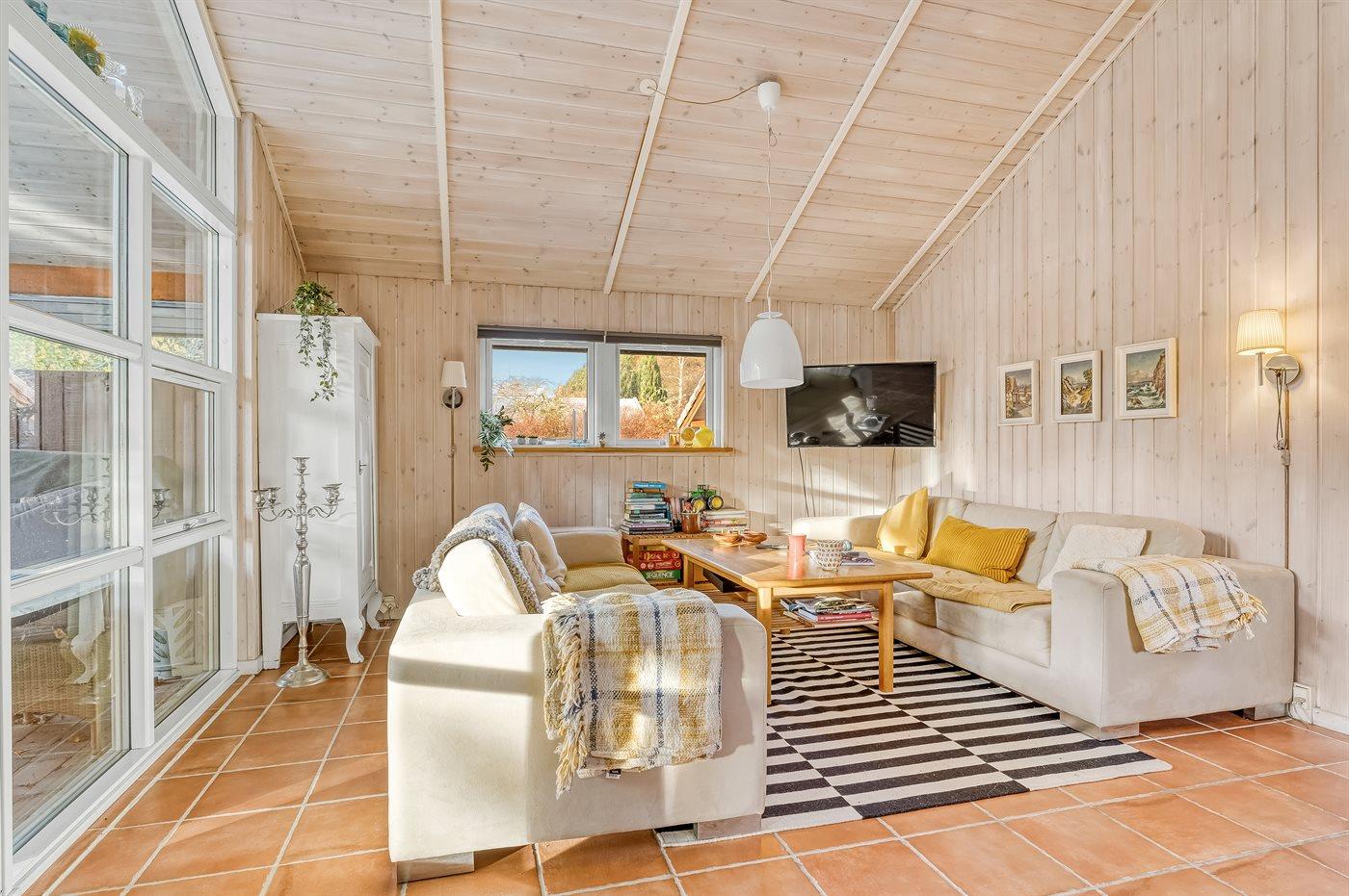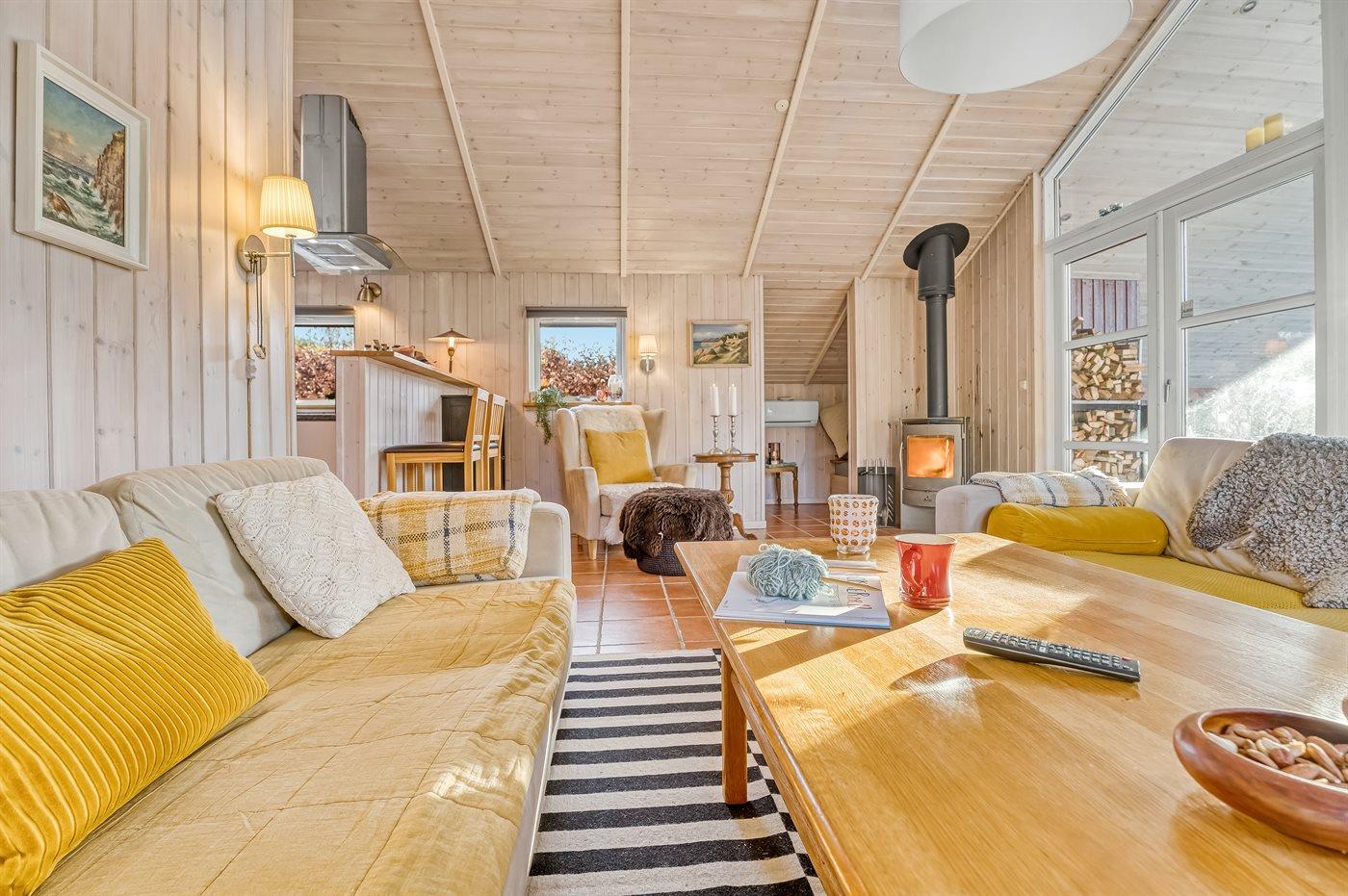 Et lyst og indbydende sommerhus med bl.a. brændeovn.