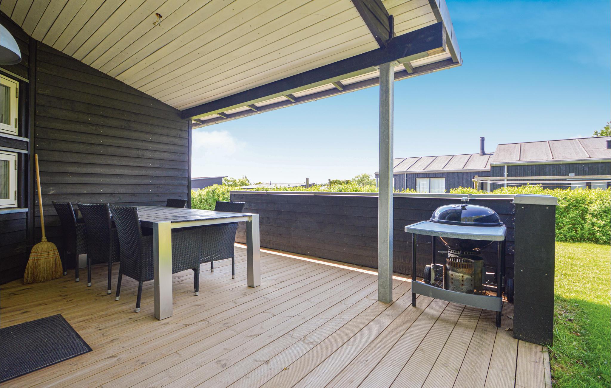 På en rolig vej, tæt på åbne vidder og med terrasser på begge sider af huset, får I her et feriehus, hvor der er tid til afslapning og hygge for hele familien. Nyd solen og de lyse aftener på de åbne og overdækkede terrasser, eller træk ind i huset, der har gulvvarme i alle rum. Stuen og køkkenet ligger i åben forbindelse, og der er udgang til terrasserne fra både stuen og køkkenet. Huset har nogle rigtig dejlige soveværelser med gode senge samt en hems med fin adgang via en rigtig trappe. Udendørs finder I en fiskerenseplads, hvis I skulle have heldet med jer på fisketuren.