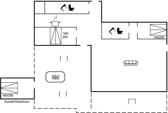 Der er i alt 3 soveværelser. Sovepladserne fordeler sig på: 6 sovepladser i dobbeltsenge. 2 af disse sovepladser befinder sig i et anneks. Derudover er der 1 stk. barneseng.