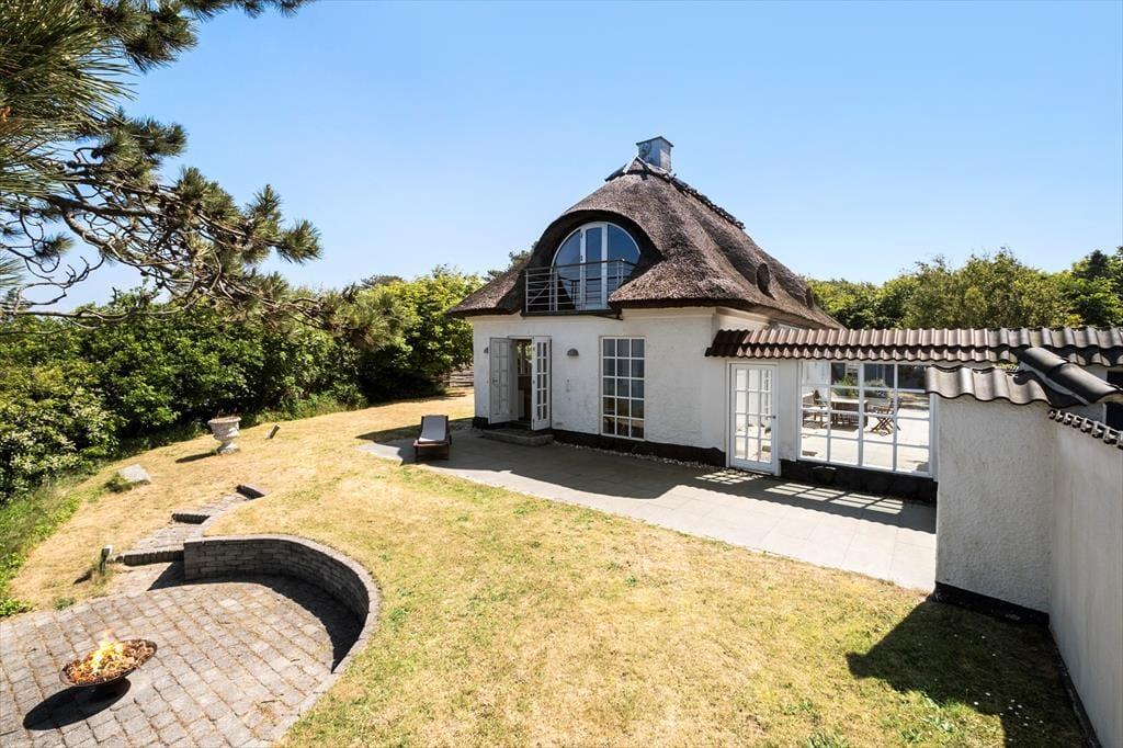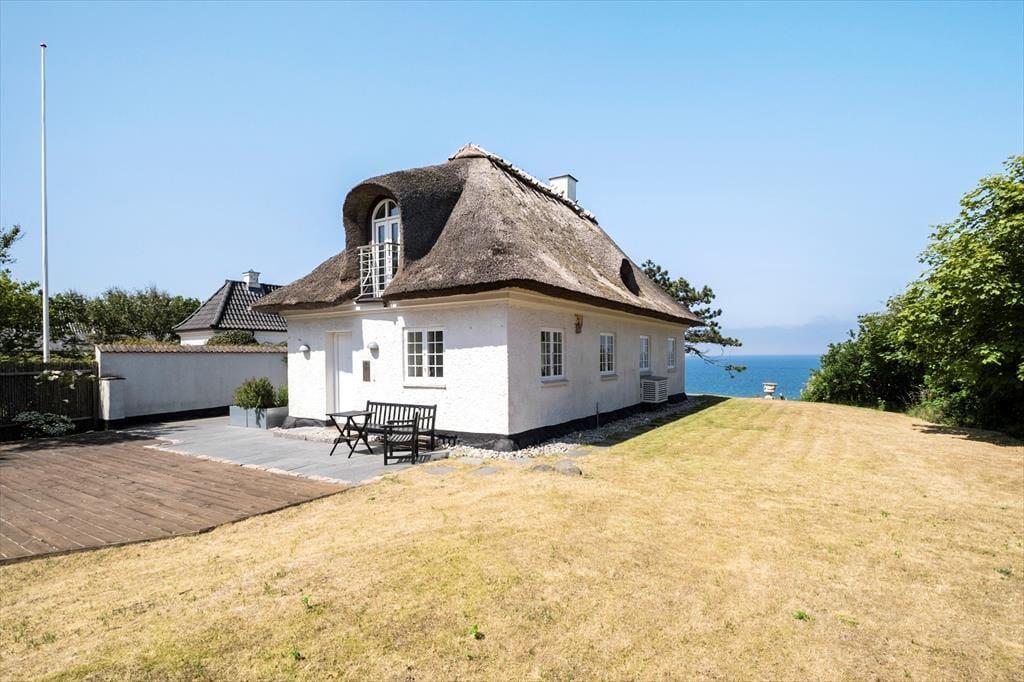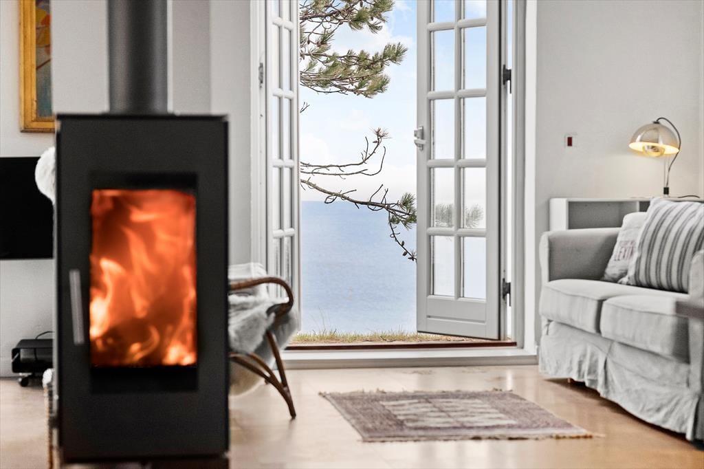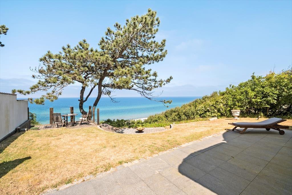 Sommerhuset har flere skønne terrasser, hvor du kan finde sol og læ dagen igennem. Her er masser af siddepladser, så du kan nyde udsigten over havet med en kop kaffe om morgenen eller et glas vin i aftensolen. På de kølige aftener sørger terrassevarmeren for ekstra varme, mens en markise giver skygge på de solrige dage.