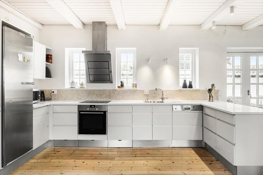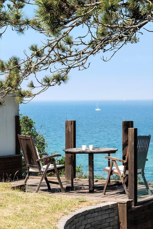 Efter en dag ved stranden kan du skylle sandet af dig i den udendørs bruser med koldt vand. Haven er velanlagt og ligger direkte ud til kysten, så du kan nyde den uendelige udsigt over havet, uanset om du sidder udenfor eller kigger ud gennem sommerhusets store vinduer.