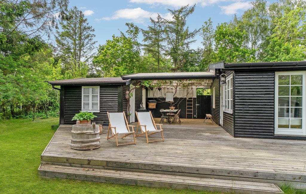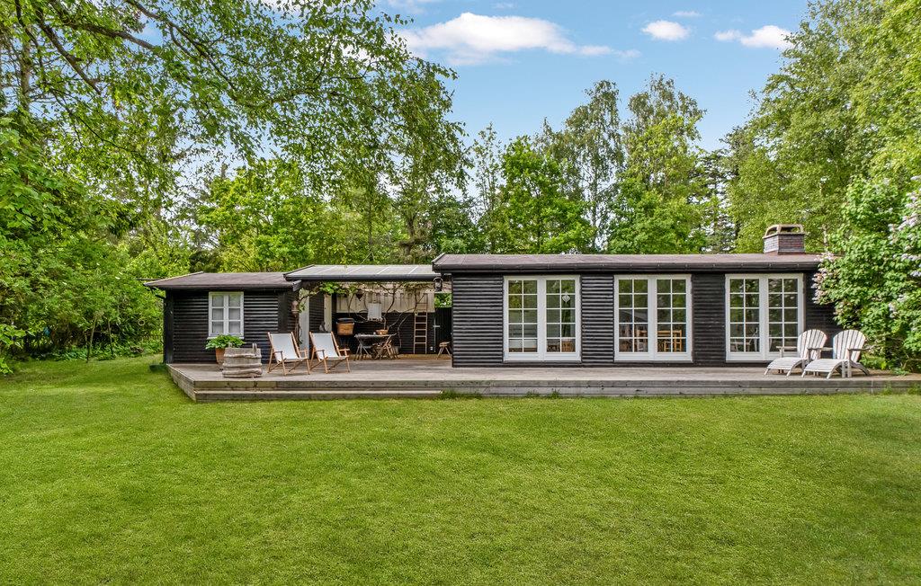 Grunden er skønt omgivet af træer, og midt i haven ligger dette moderne, elegante sommerhus, som byder på et væld af fine detaljer. I kan se frem til en bolig, som er lyst og lækkert indrettet med moderne og stilrene løsninger, så her får I en behagelig ramme om samværet efter en lang dag på farten. Nyd dagens måltider med udsigt til haven og fyr op i brændeovnen på en kølig dag, hvor vejret mest lægger op til raske gåture og efterfølgende indendørshygge med brætspil og varm kakao.