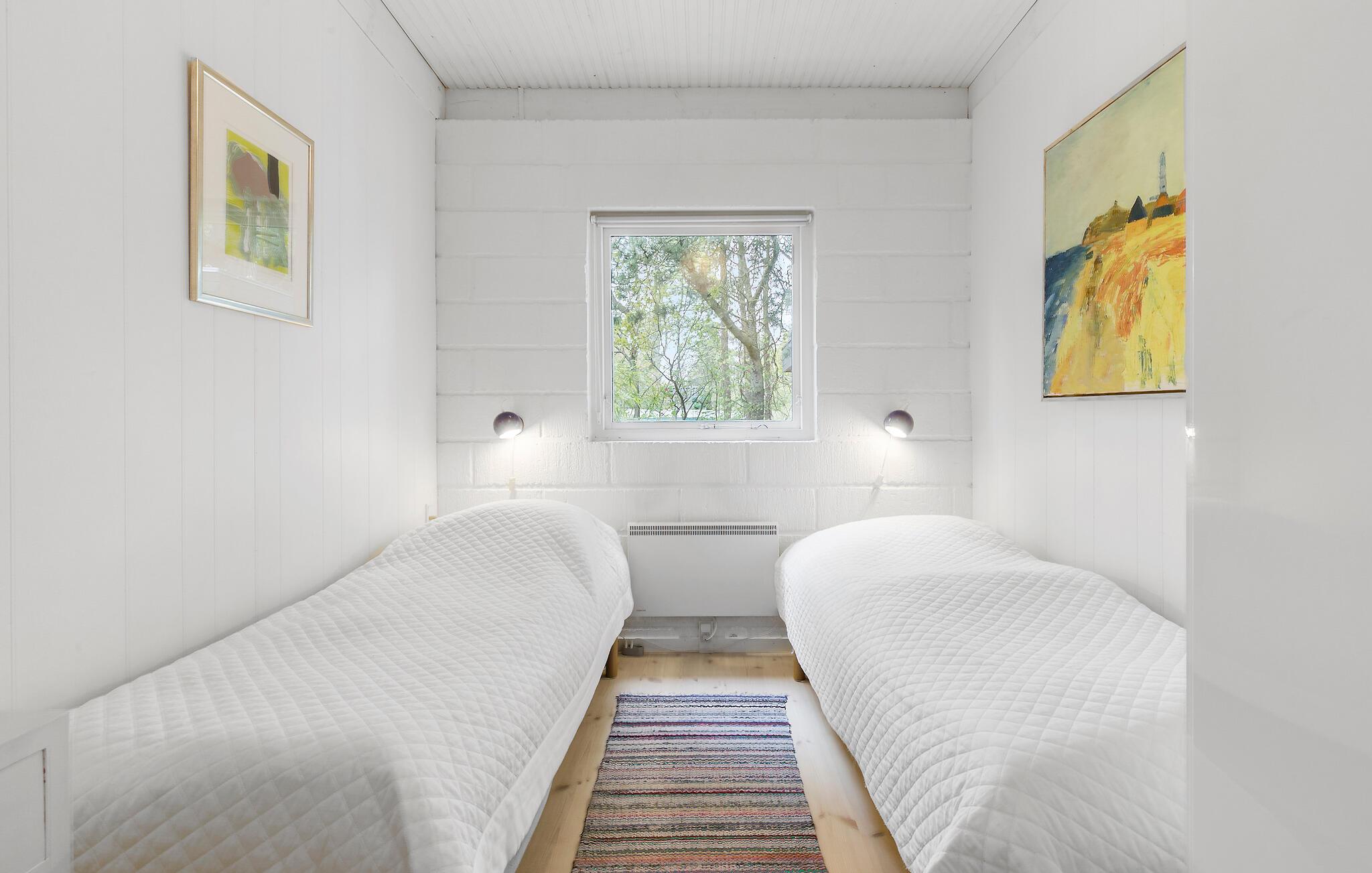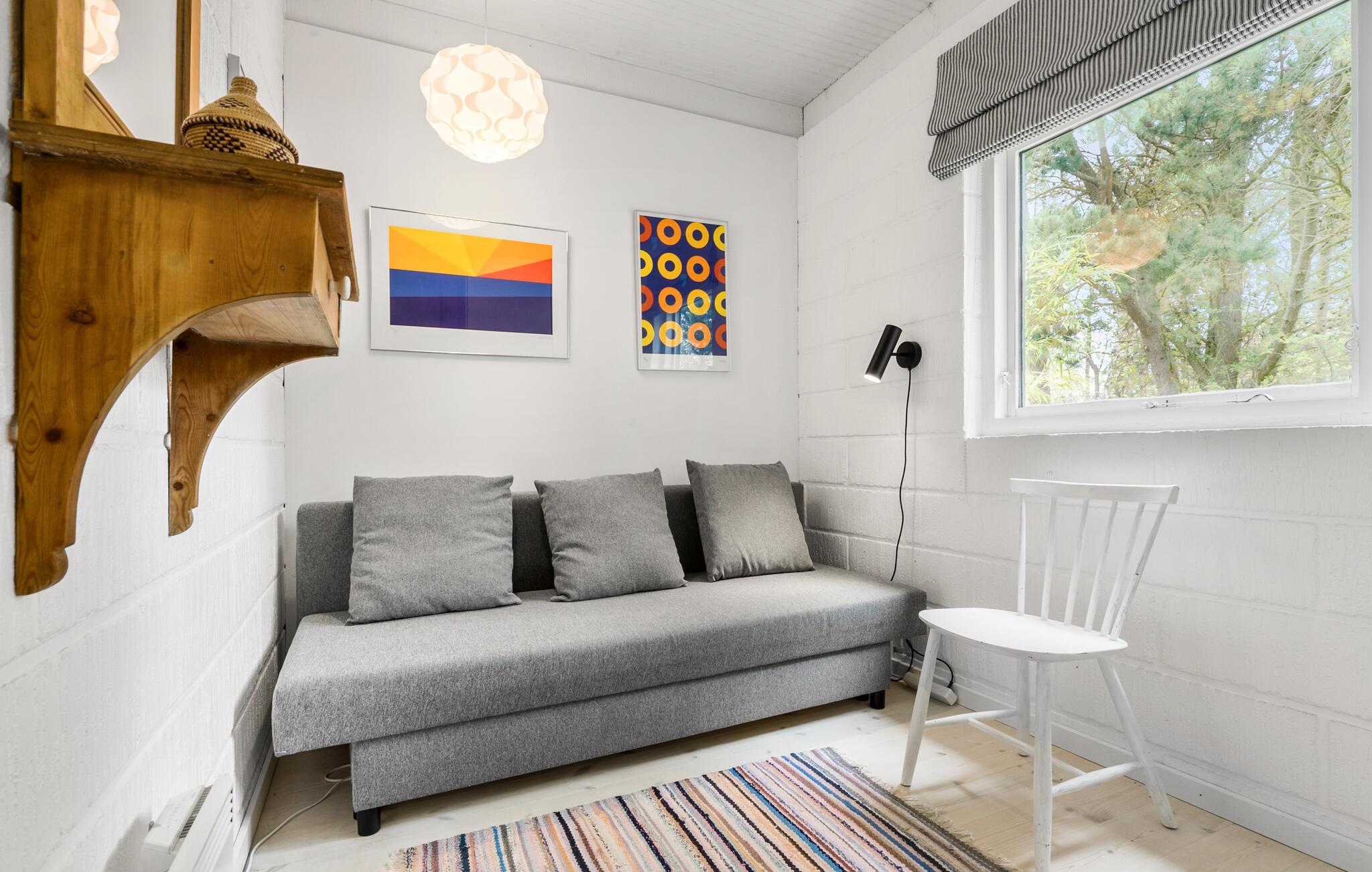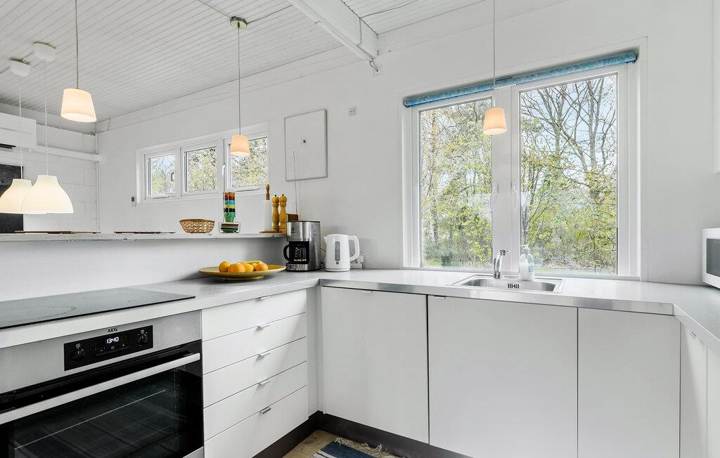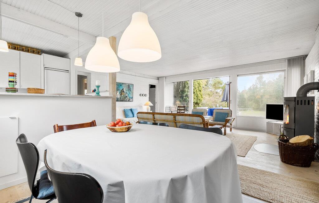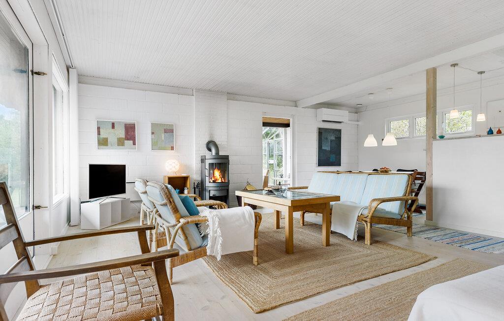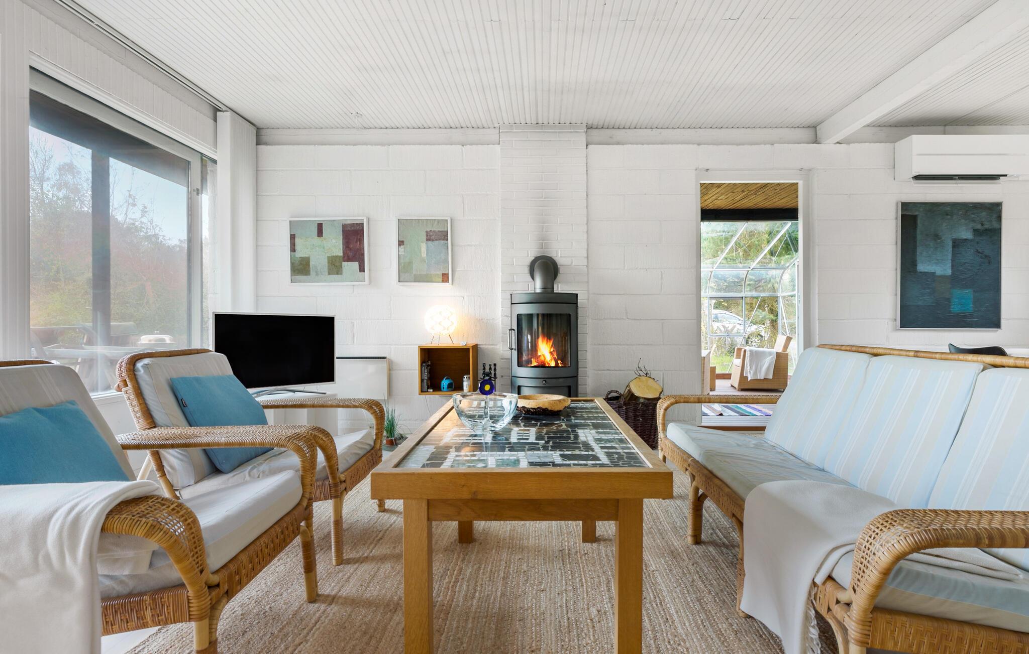 Her bydes I velkommen til et lyst og indbydende sommerhus, som ligger placeret på en skøn og ugeneret grund med både terrasse og glasudestue. Selve huset er praktisk indrettet og har en hyggelig stue, som også fungerer som hjerterummet, da her både er plads til madlavning, spisning og hygge. Skulle vejret bide lidt, kan I tænde op i brændeovnen, der giver varme og det helt rette lydtapet til streaming af en god film eller serie på tv'et til langt ud på aftenen.