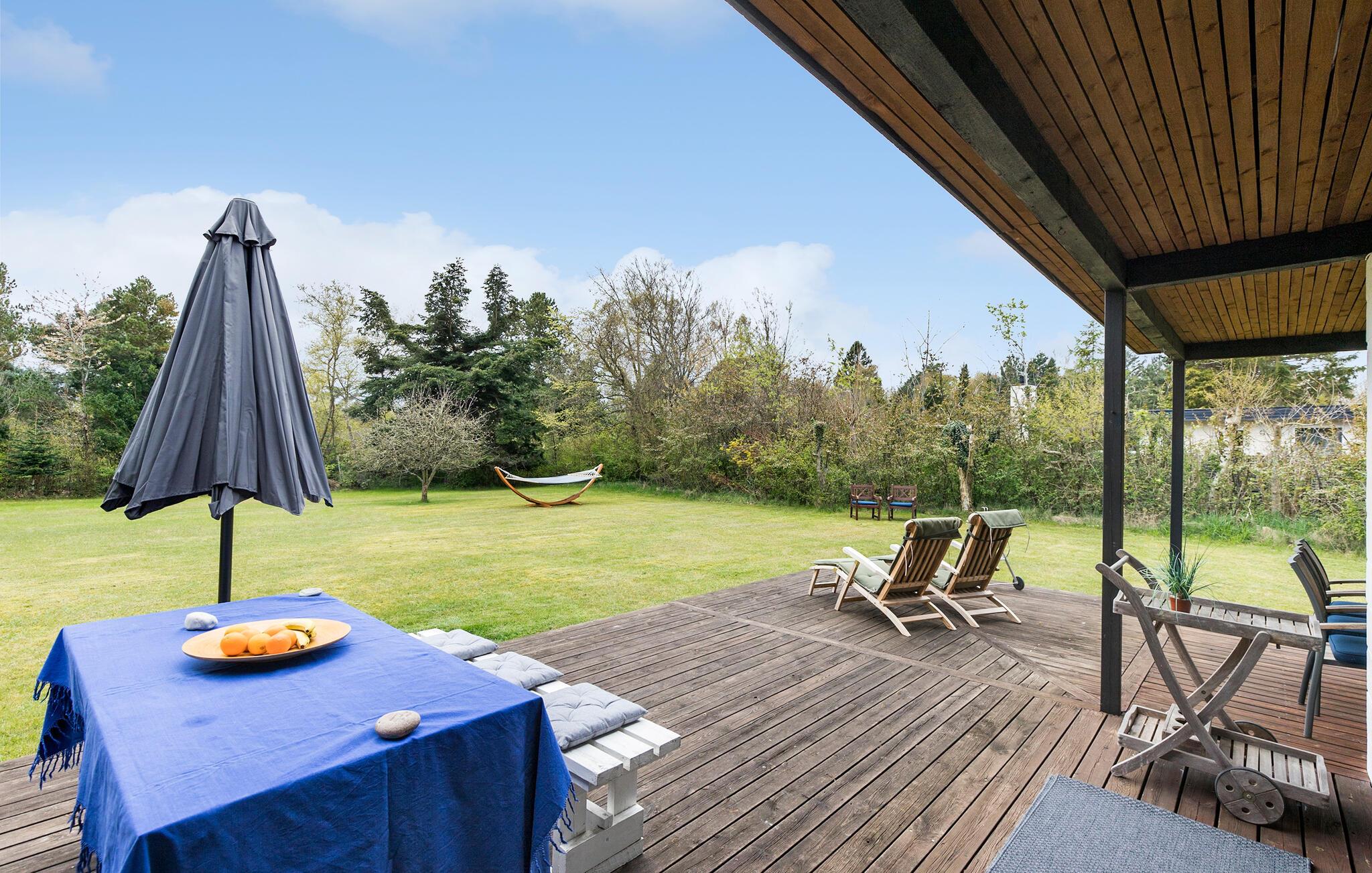 Når solen skinner, kan I nyde den i fulde drag på terrassen eller i hængekøjen, mens børnene løber rundt og spiller bold på den store grund.