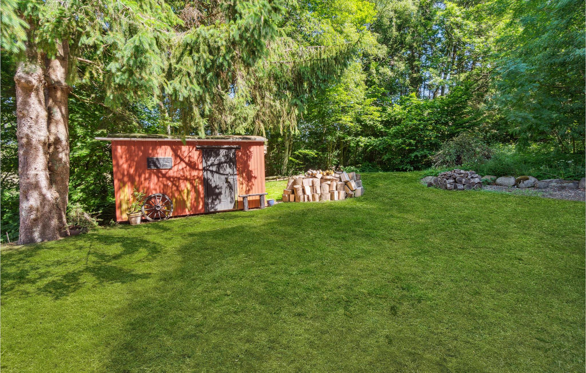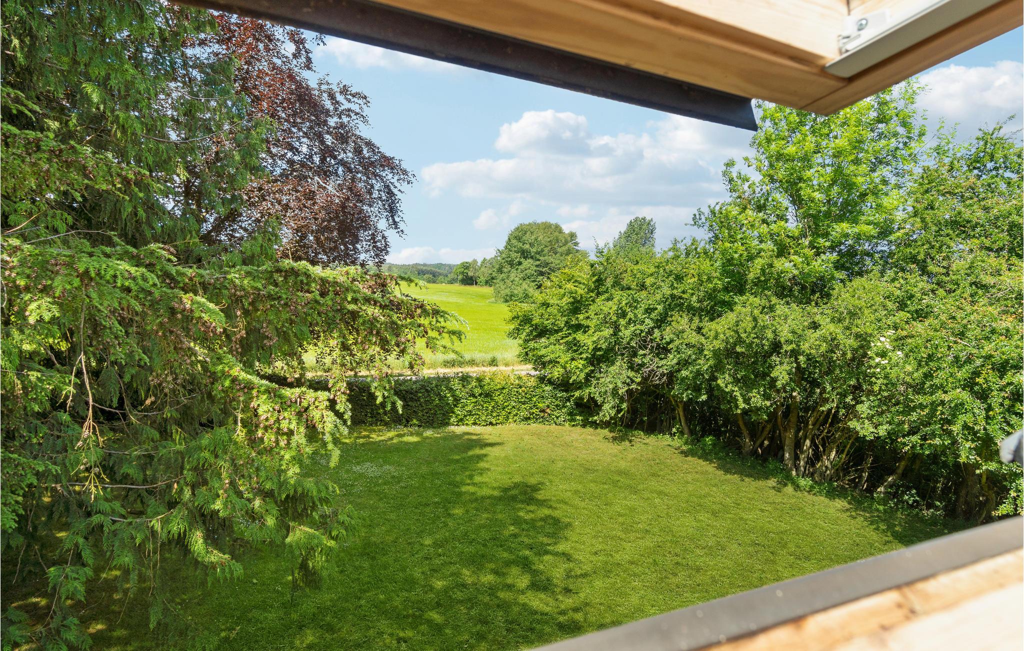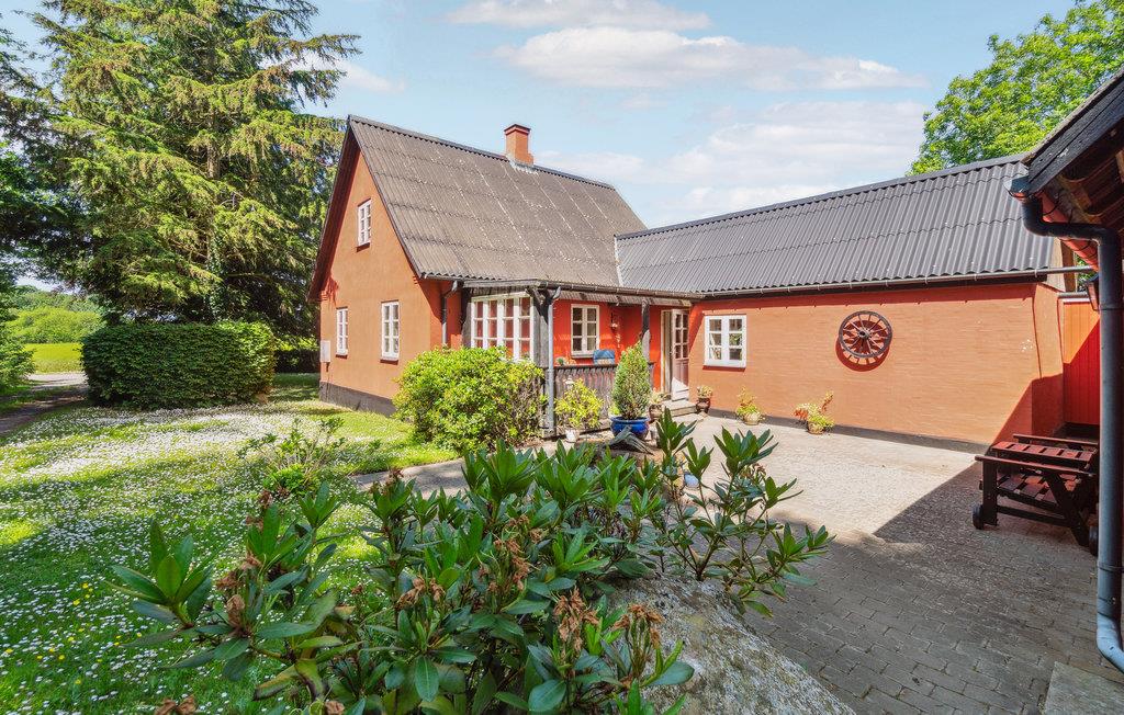 Dette dejlige feriehus byder jer velkommen omgivet af store smukke træer, marker og enge. En fryd for krop og sjæl. De hyggeligt indrettede og lyse værelser med karakteristiske trælofter og træbjælker indbyder til afslapning. Den charmerende blanding af moderne og ældre møbler vil få jer til at føle jer hjemme. Sæt jer godt til rette i sofaen om aftenen, tænd op i brændeovnen og lad spillehyggen begynde. Husk lækkerierne! Nyd skønne timer udenfor i den store have med solbadning, fangeleg eller måske gemmeleg? Bred et tæppe ud og leg, at I er på skovtur eller drik en kop kaffe på terrassen. Senere kan I runde dagen af med et lækkert måltid fra grillen.