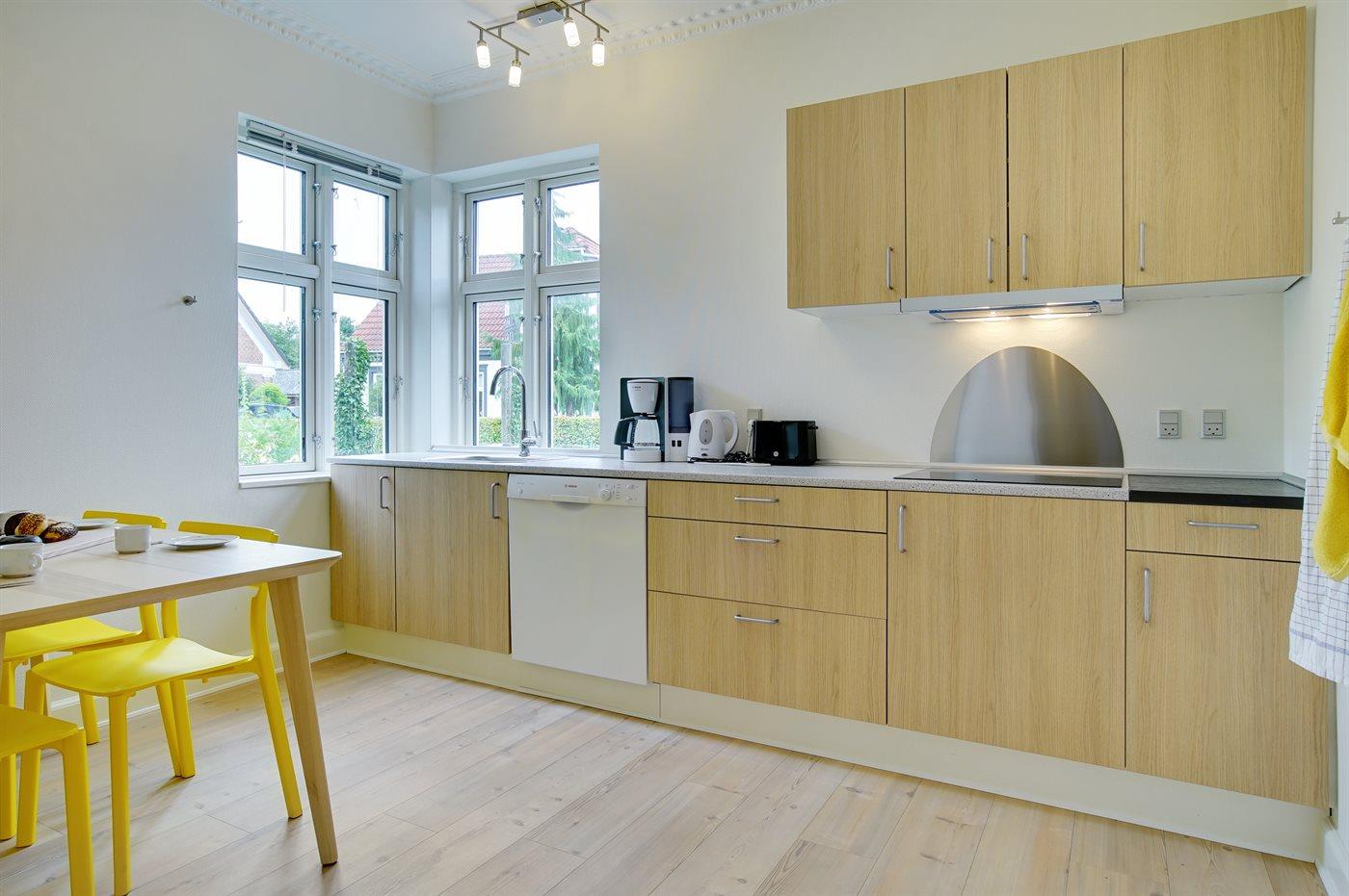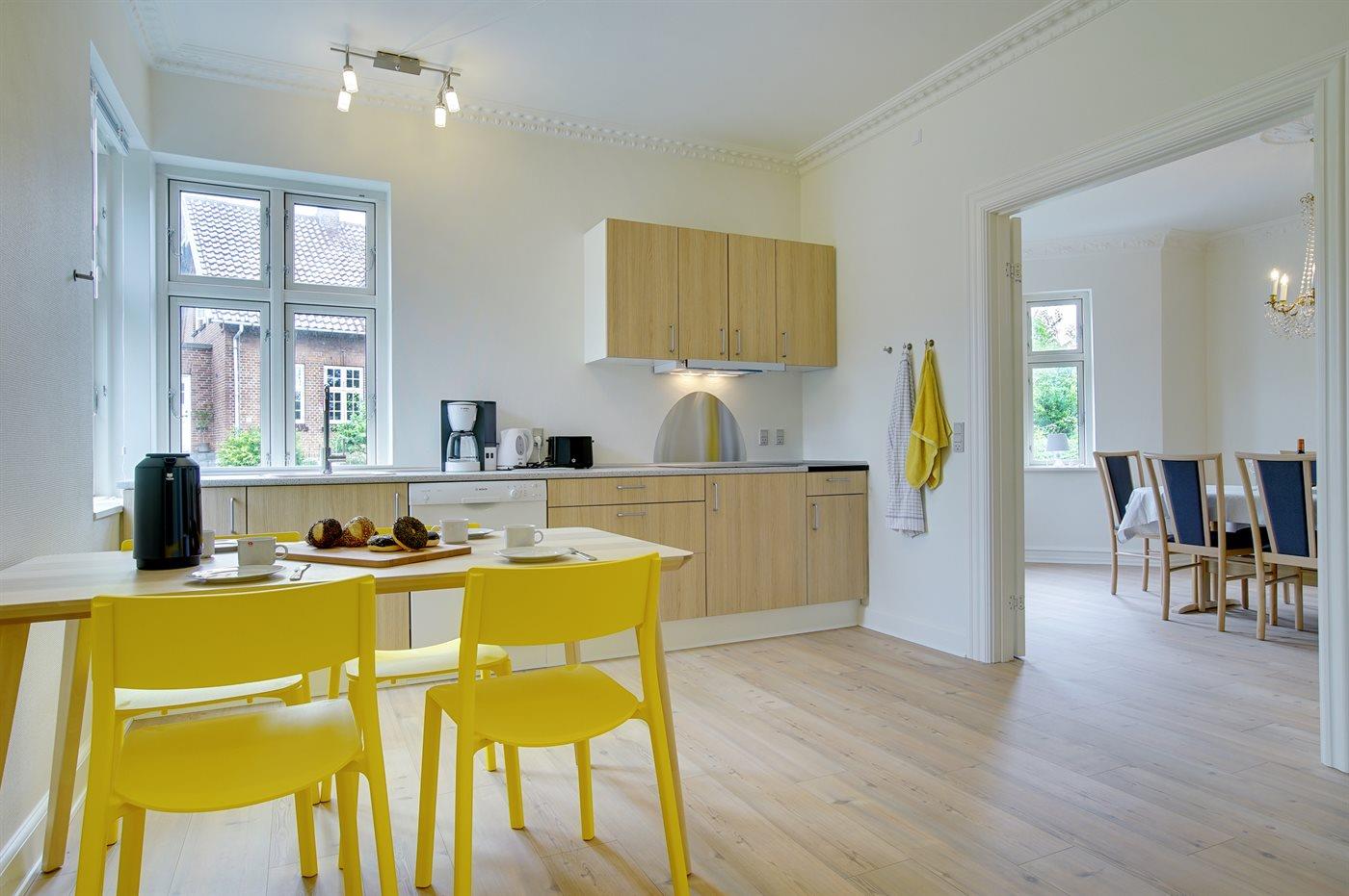 Køkkenet er udstyret med 1 køleskab, varmluftovn samt opvaskemaskine.
