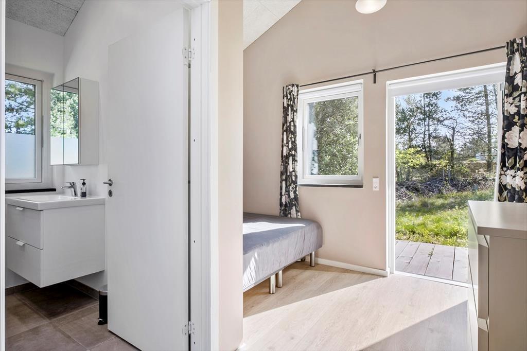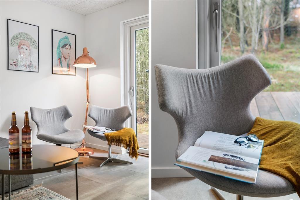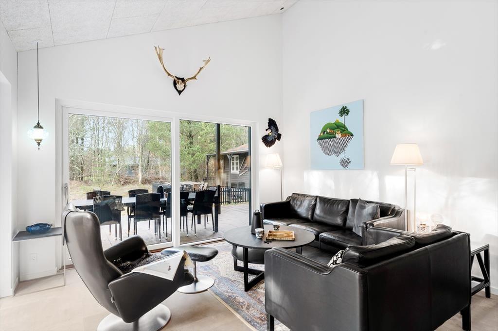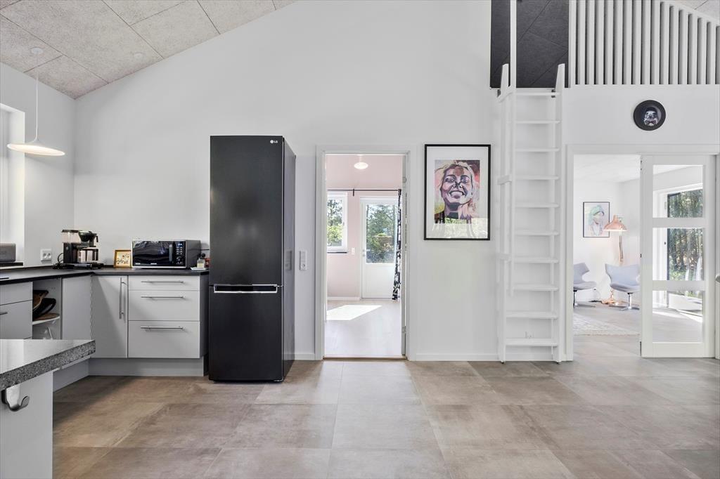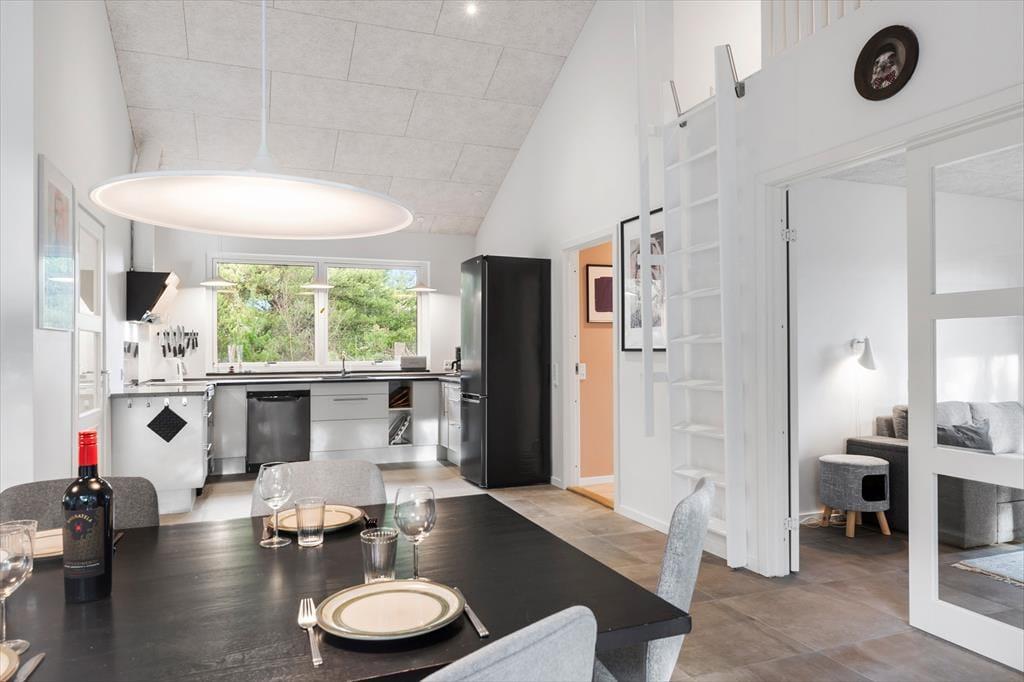Det moderne design og den gennemtænkte planløsning sætter rammen om ferielivet i dette dejlige sommerhus. Huset byder på lyse opholdsrum med store vinduespartier, der lukker naturens lys og farver helt ind. Det åbne køkken-alrum er husets hjerte, hvor du kan samles med familien omkring madlavning og hyggelige middage. Den rummelige stue indbyder til afslapning med en god bog eller en film, mens brændeovnens varme spreder hygge. Med tre soveværelser og to badeværelser er der god plads til hele familien, og et praktisk bryggers gør det nemt at holde styr på hverdagslogistikken.