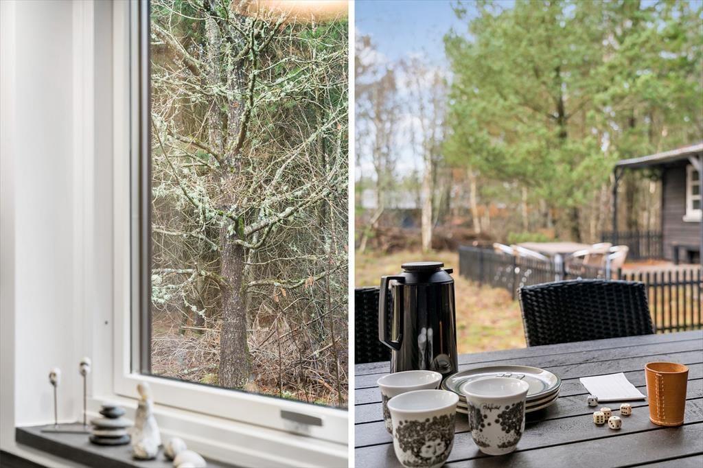 Sommerhuset har flere terrasser, som gør det nemt at nyde livet udenfor, uanset om du vil dase i solen eller finde skygge under et overdækket areal. Terrasserne ligger omkranset af træer, så du får en fornemmelse af at være midt i naturen. Her kan du tænde op i grillen og nyde lange aftener under åben himmel, mens fuglene synger i baggrunden. Grunden er stor og privat, og der er masser af plads til, at børnene kan lege og boltre sig, mens de voksne slapper af.