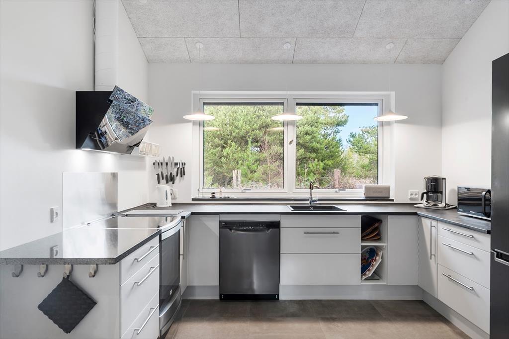 I dette moderne sommerhus for enden af en blind vej kan du og familien nyde en ferie omgivet af naturens ro. Sommerhuset ligger i Rødhus, et fredeligt område tæt på klitter, skov og strand, og med en skøn planløsning og flere gode terrasser er det perfekt til en afslappende ferie med tætte venner eller familien.