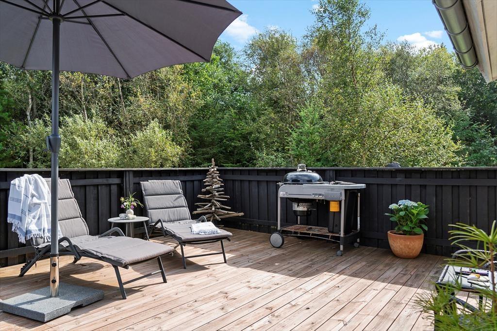 Et dejligt sommerhus med alle ønskelige faciliteter både ind og ude, dejlige terrasser og rolige omgivelser.