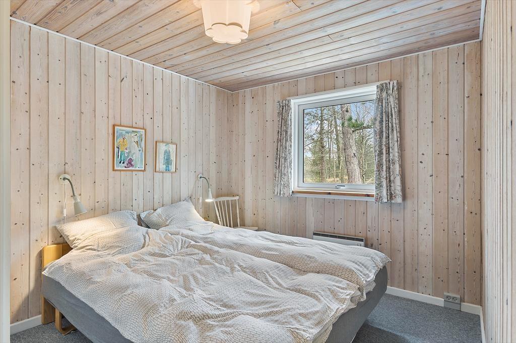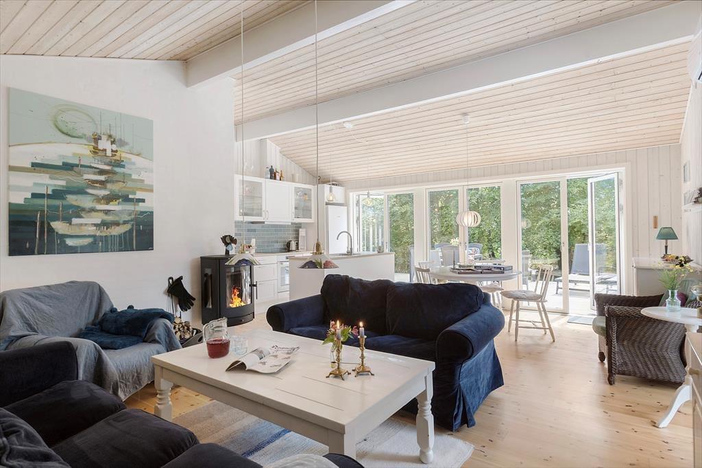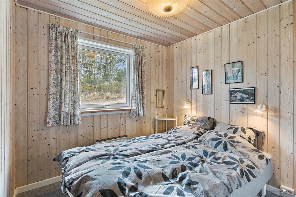 Sommerhus i Rødhus, Nordjylland, med plads til 7 voksne. Der er en hyggelig indretning med bl.a. brændeovn, og du finder desuden vaskemaskine, opvaskemaskine og tørretumbler i boligen.