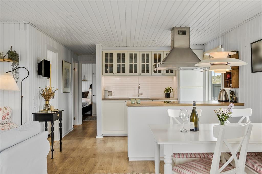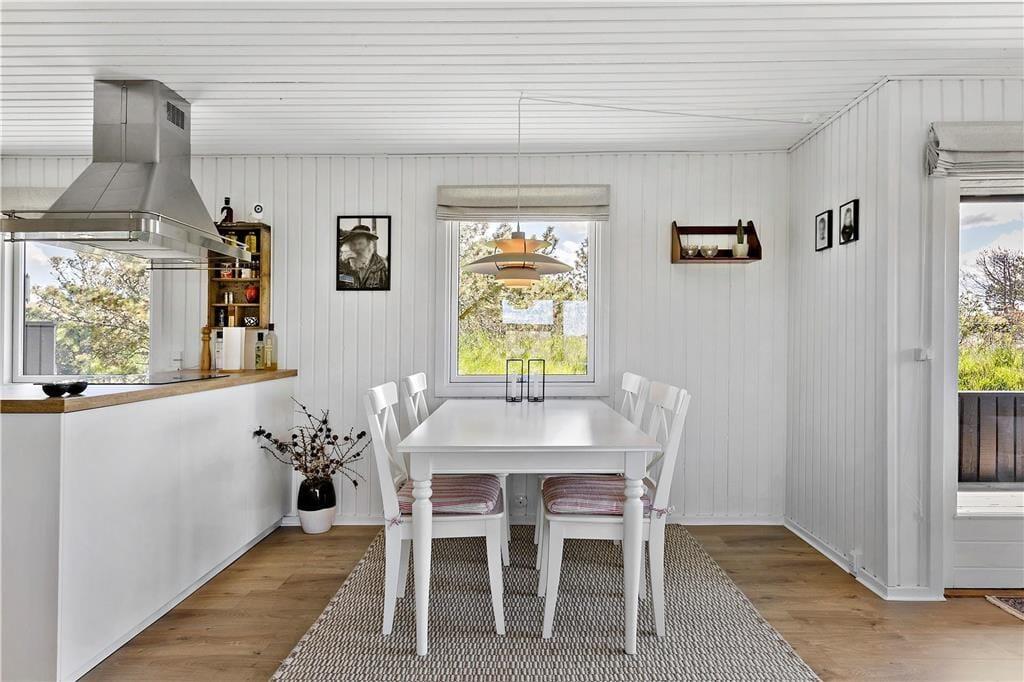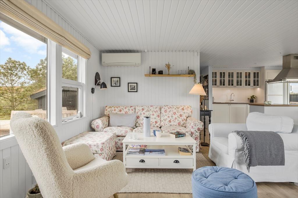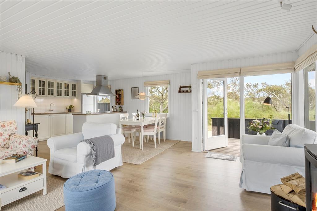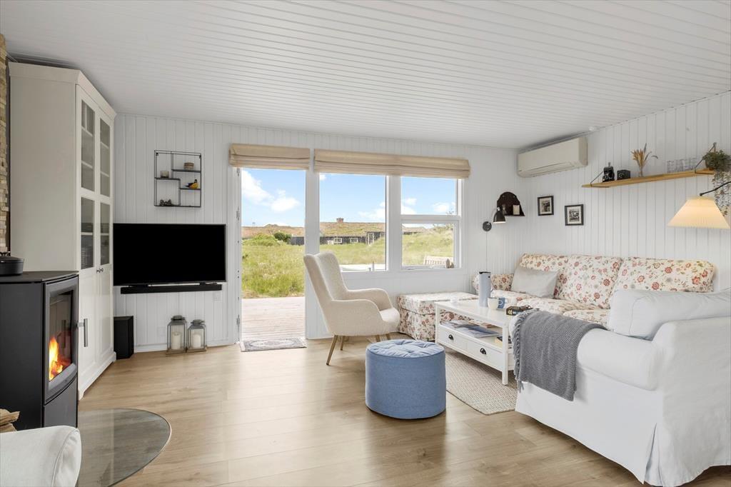 Et virkeligt hyggeligt hus, som stadig efter en gennemgribende renovering i 2017, oser af den helt rigtige sommerhusstemning: lyse gulve, hvide panelvægge, vinduer med udsigt til klitlandskabet og en flot brændeovn til at skabe den hyggelige atmosfære. Huset består af et åbent køkken-opholdsrum, tre værelser med hhv. to dobbeltsenge og en sovesofa og endeligt et badeværelse med toilet og bruser som er renoveret i 2020. Møblerne er holdt i lyse og nedtonede farver og tekstiler, brugskunst og andre pynteting er afstemt hertil. Huset er udstyret med opvaskemaskine, varmepumpe, kabel-tv og trådløst internet, så medbring gerne tablets eller pc hjemmefra, så er det nemt at søge informationer og oplysninger om alle de muligheder, som området byder på. Ydermere byder huset på 2 TV apparater. Et i stuen og et på det ene værelse. Et kvalitetshus med garanti for en vellykket ferie i det nordjyske.