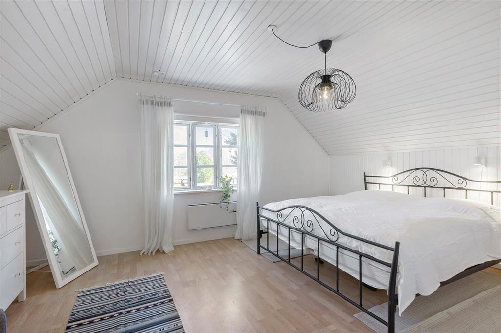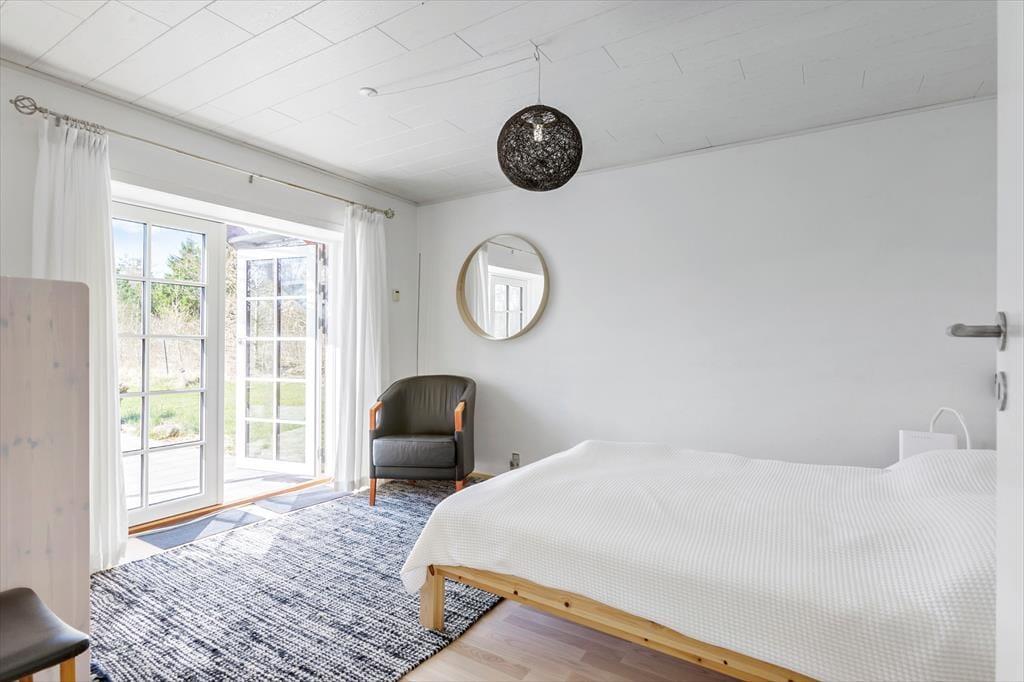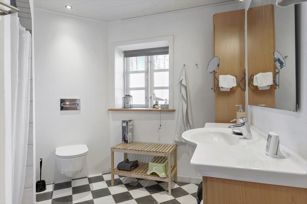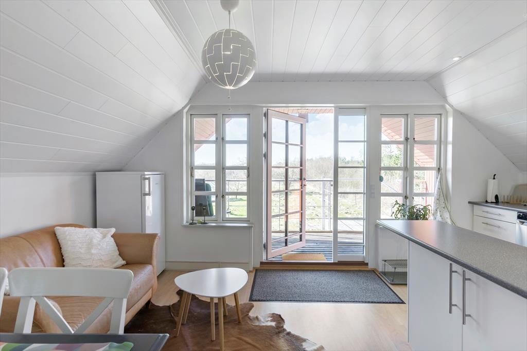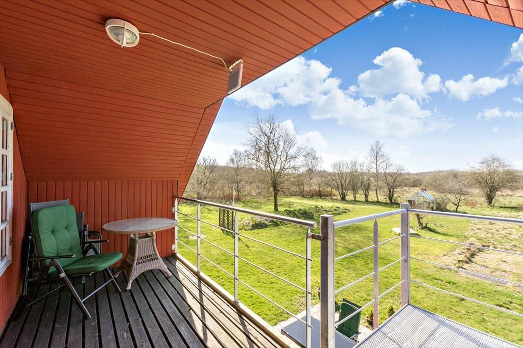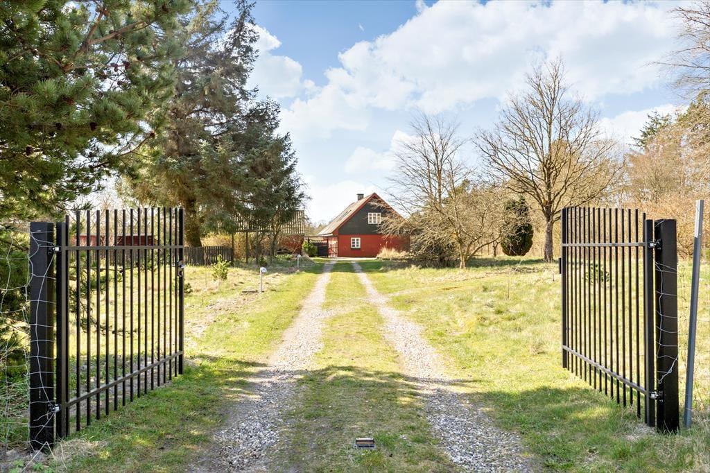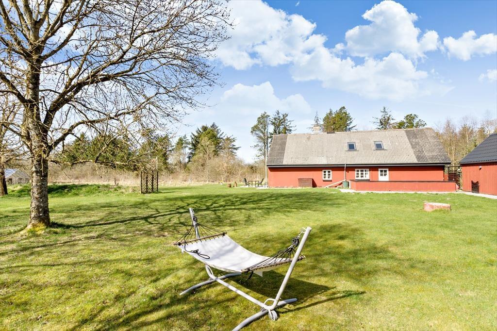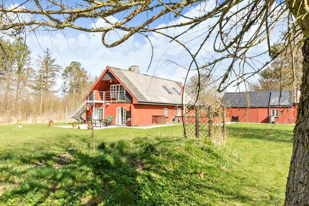 Ikke bare børn og voksne, men også hunde vil trives på sommerhusets dejlige udearealer. I har hele 12.050 m2 at boltre jer på, og en del af grunden er indhegnet, mens omgivelserne er fredelige og naturskønne. Det er herligt at sole sig på husets terrassearealer, nyde udsigten førstesalens overdækkede altan og samles for at grille om aftenen. Til de yngste er der sandkasse og gynge, og legebørn i alle aldre kan virkelig give den gas på den vidtstrakte græsplæne.