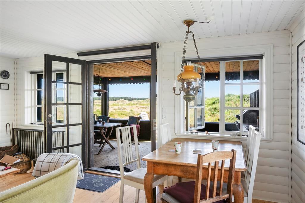 Med sin traditionelle arkitektur, charmerende indretning og naturskønne beliggenhed er dette sommerhus en skøn oase for enhver, der trænger til at slappe af i hyggelige omgivelser. Gennem vinduerne og fra den overdækkede terrasse kan I kigge lige ud på den fredede klithede, og til fods eller på cykel har I nem adgang til Rødhus Strand.