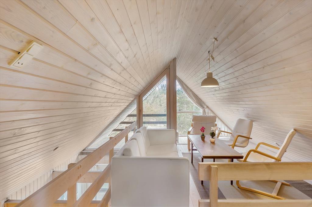 Grinden 6 er et skønt sted at holde ferie, hvis du holder af fred og ro, smukke naturomgivelser og vaskeægte sommerhushygge. Her på den lille, lukkede vej i Rødhus kan du slappe af i et charmerende sommerhus, omgivet af krogede fyrretræer og marehalmsklædte klitter – og fra førstesalen kan du endda skimte Vesterhavet, der bruser cirka 500 meter væk.