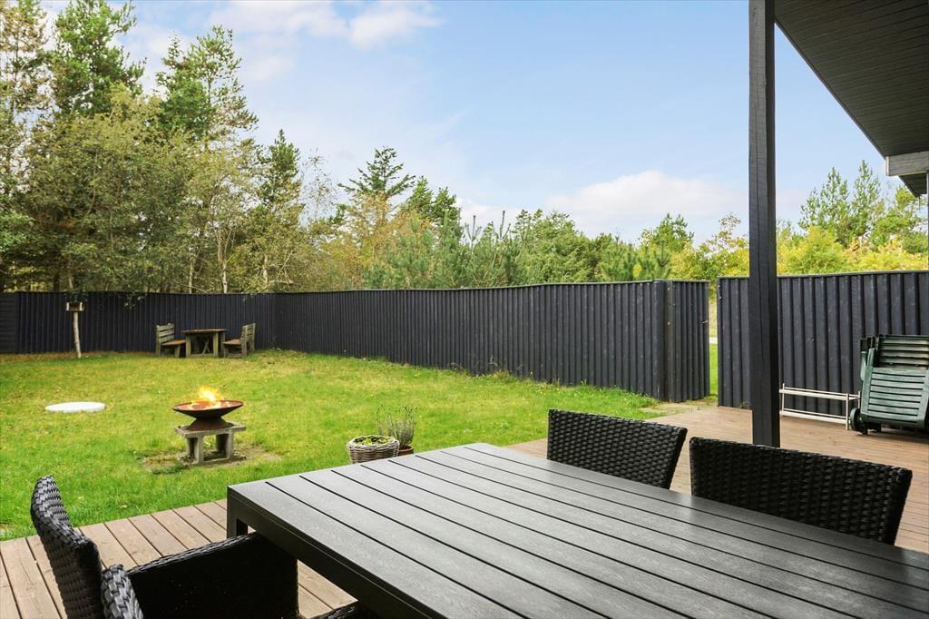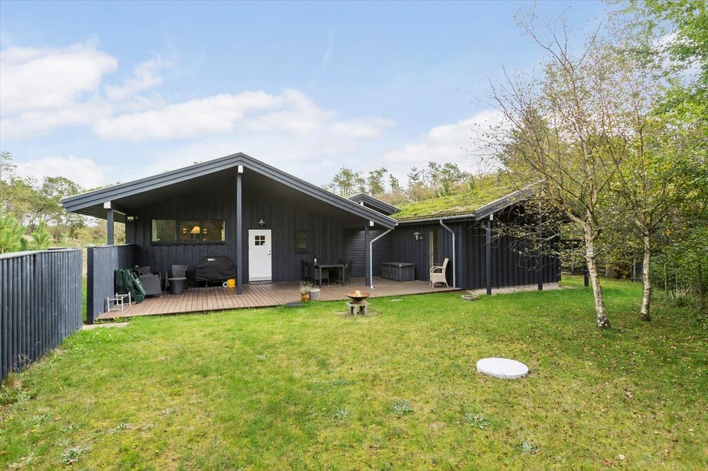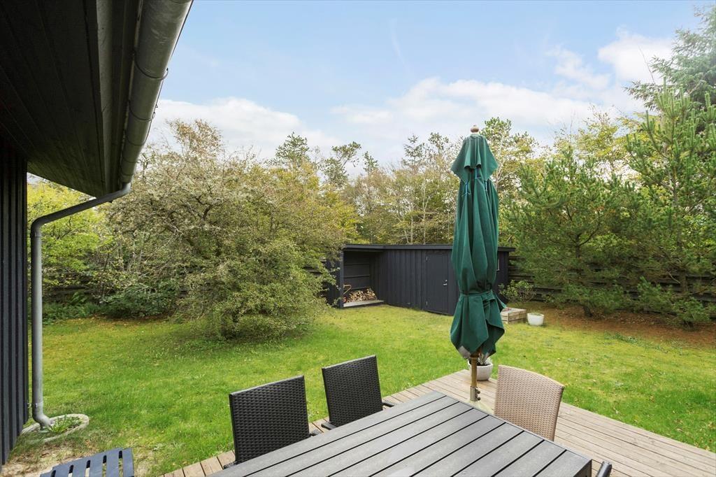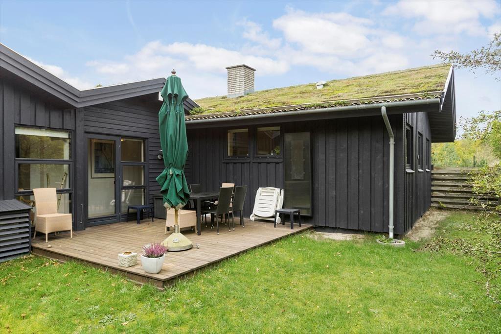 Ferieliv og udendørs hyggestunder hænger unægtelig sammen, og på husets terrasser kan I komme helt ned i tempo og bare nyde de fredfyldte omgivelser på den ugenerede grund. Her står den på frisk luft og duft af lyng og nåletræer til tonerne af fuglekvidder – meget bedre bliver det ikke. Da der er terrasser på begge sider af huset, kan I altid finde en plet med sol eller skygge efter behov, og der er også en del af terrassen, som er overdækket.