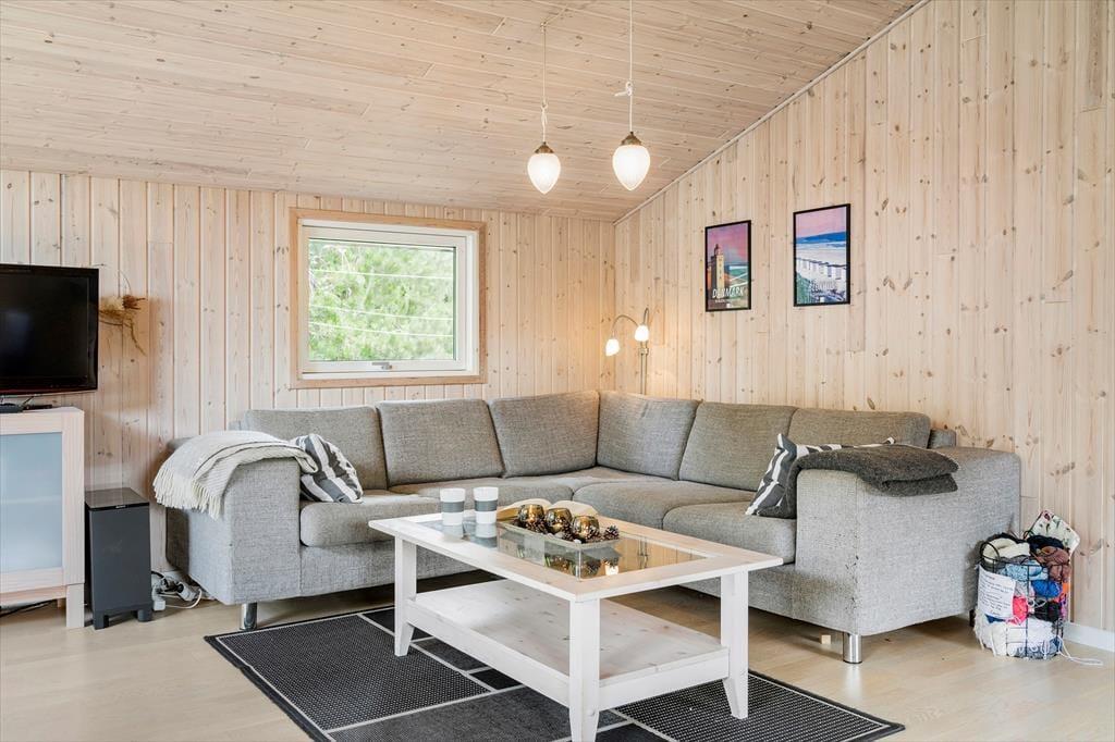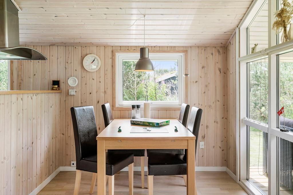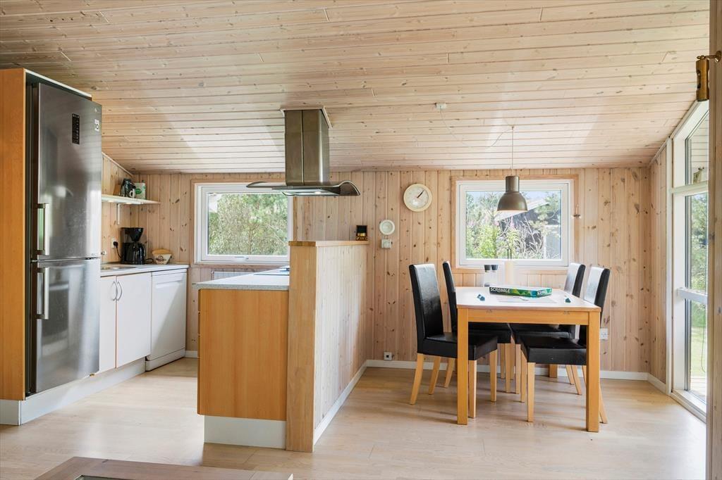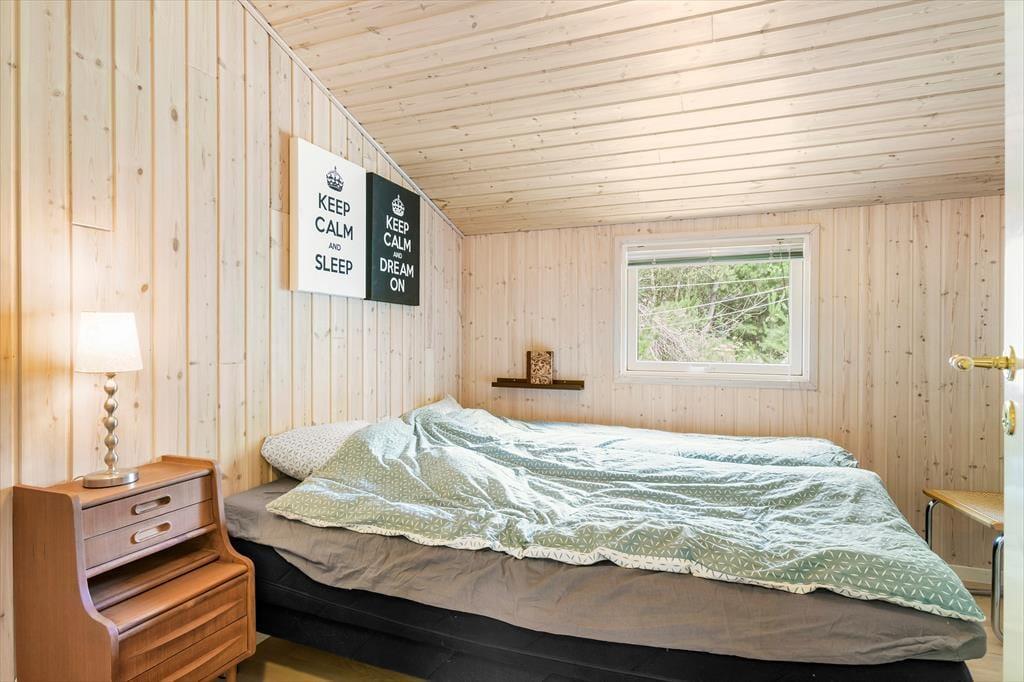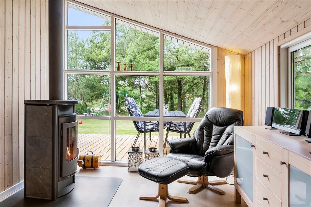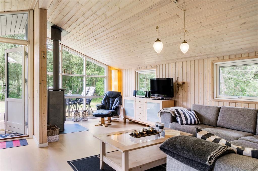 Sommerhuset, som er opført i træ, emmer af ægte sommerhusstemning. Det er tydeligt at ejerne passer godt på stedet og sætter en ære i at gøre det brugbart og hyggeligt. Her er plads til seks overnattende gæster, og deres samlingspunkt bliver hurtigt det åbne opholdsrum med køkken, spiseplads og stue. I stuen finder man en stor og flot brændeovn, som spreder varme på kølige morgener og aftener og som skaber den helt rigtige stemning for en afslappende ferie. Sommerhuset egner sig fint til at have børn med, barneseng og stol kan tages i brug, og de lidt større børn vil sætte pris på det gratis og trådløse internet. En god kombination af funktionalitet, kvalitet og hygge!