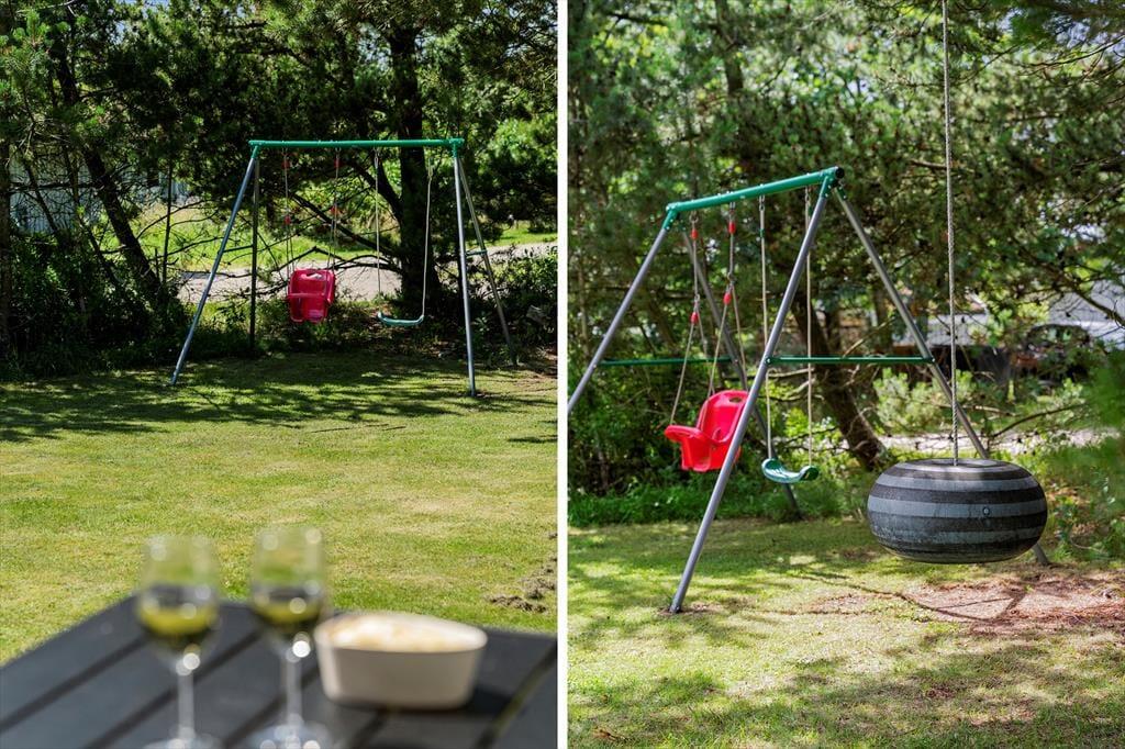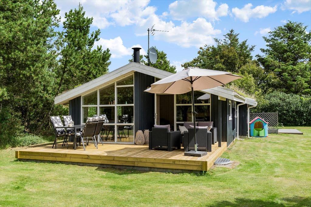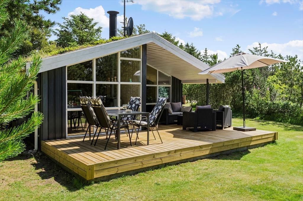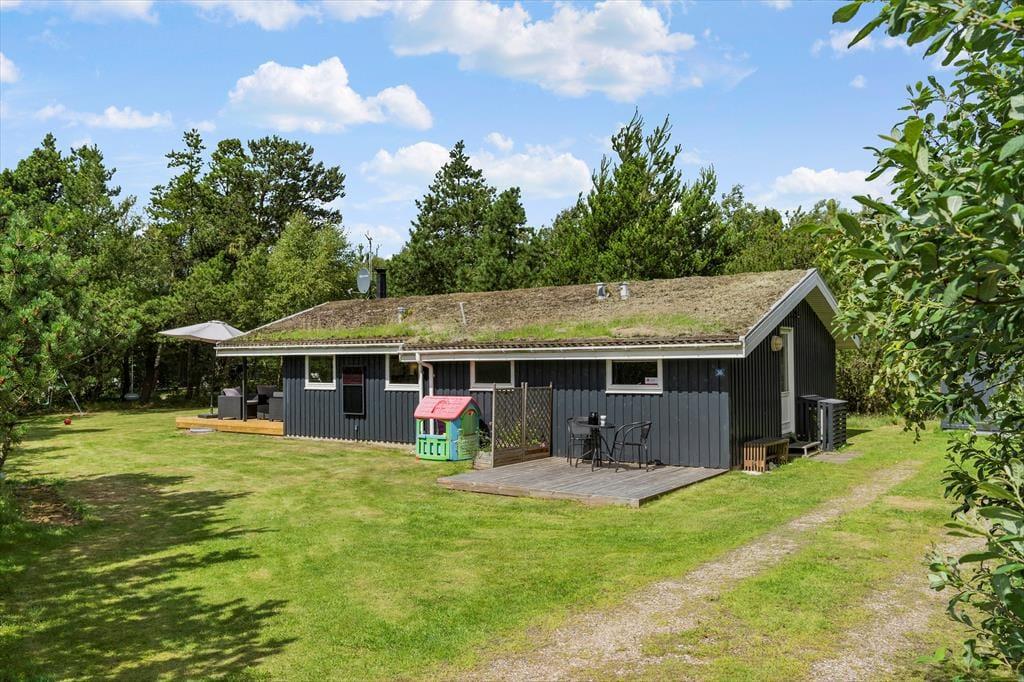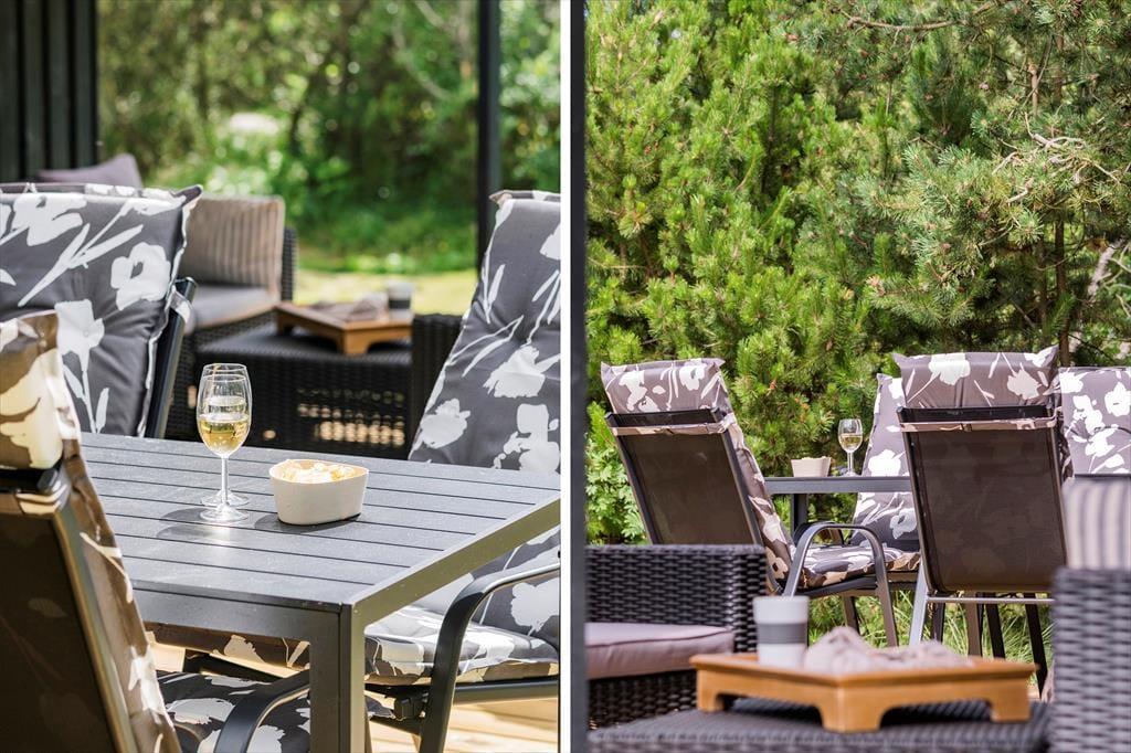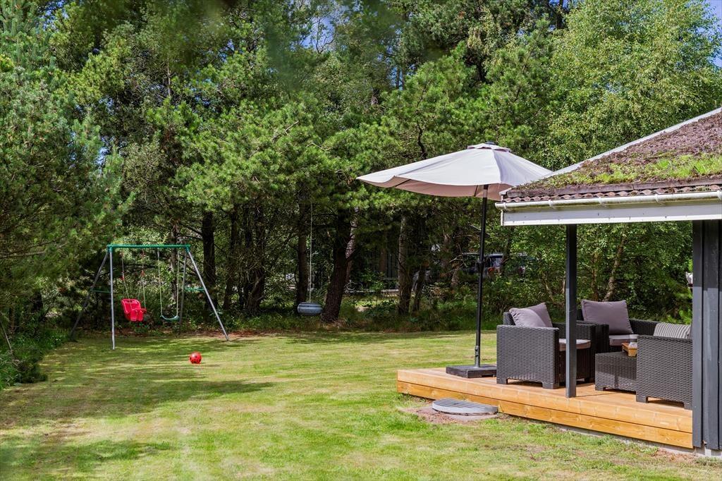 Ikke mange sommerhuse har så skønne udendørsfaciliteter som dette sommerhus:, her kan livet nydes i fulde drag. Trænger man ind i mellem til at slappe af, er der gode muligheder for dette på de to terrasser, hvoraf den ene er delvist overdækket og aflukket.