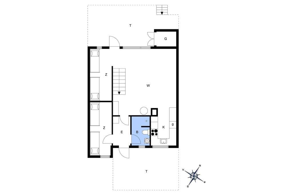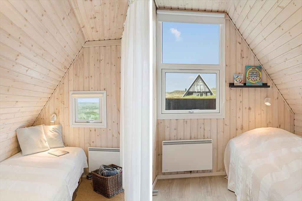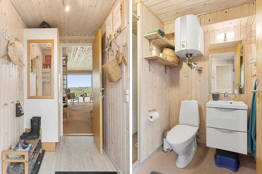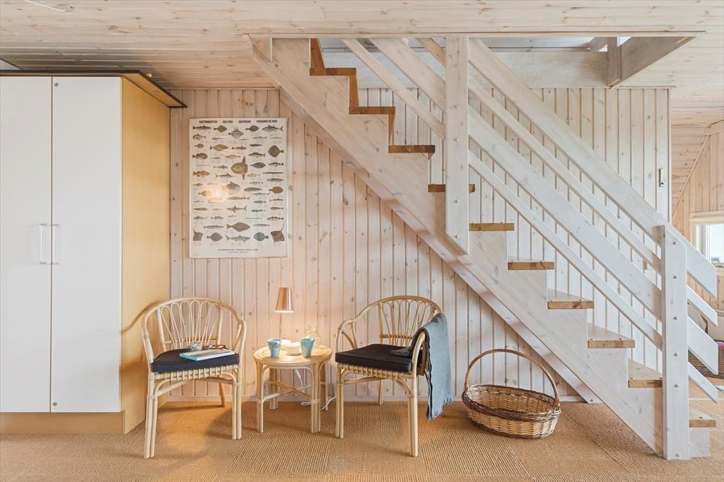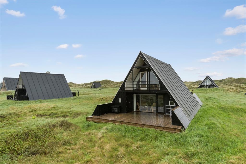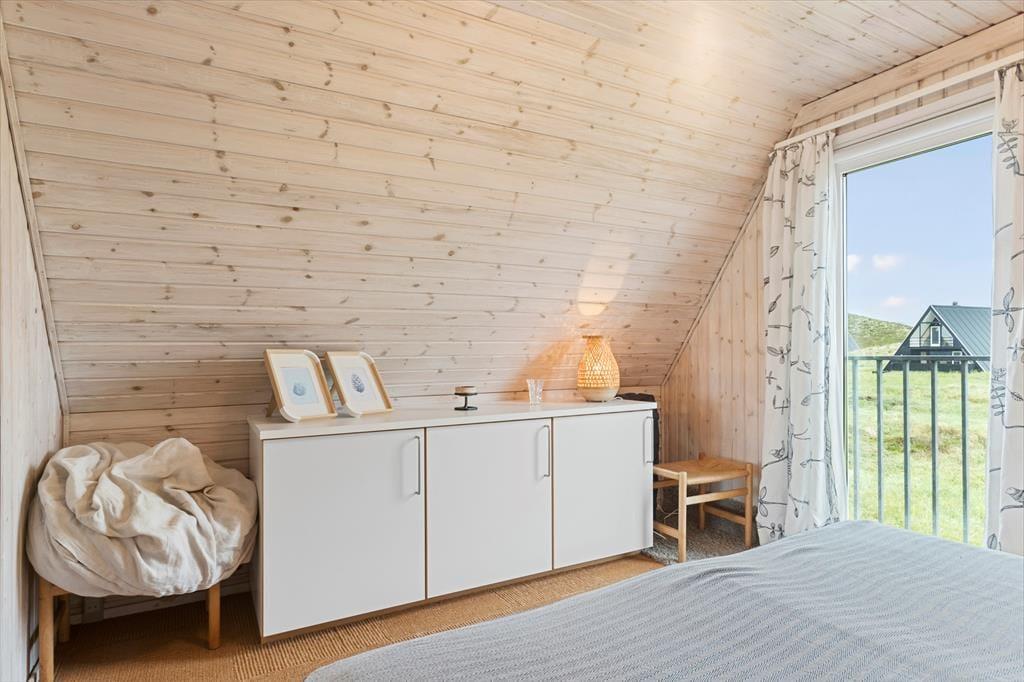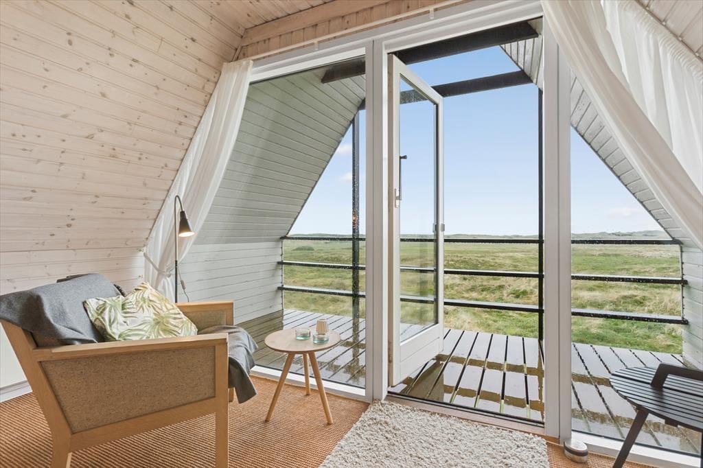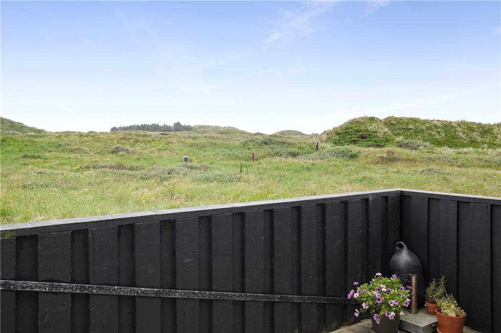 Udenfor venter to dejlige terrasser, hvor du kan nyde solen hele dagen. Den ene terrasse er sydvendt og ideel til morgenkaffen, mens den anden vender mod vest og indbyder til middag i solnedgangen. Begge terrasser er udstyret med havemøbler og parasol, så du kan slappe af og nyde den friske luft i fulde drag. Grunden er omgivet af klitter og højt græs, hvilket giver en følelse af at være helt tæt på naturen. Fra første sal har du desuden en balkon, hvor du kan nyde den ugenerede udsigt over landskabet og Vesterhavet.