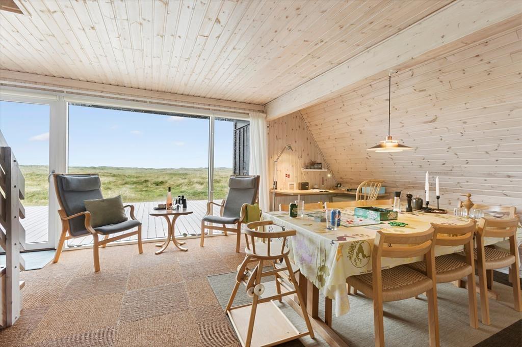 Narhvalen 16 ligger i et af de smukkeste områder i Nordjylland, hvor naturen er i fokus. Den brede sandstrand ved Rødhus er kun en kort gåtur væk og indbyder til solbadning, strandspil eller en forfriskende dukkert i Vesterhavet. Området byder også på flere store klitplantager med gode stier til vandreture, cykling og løb. Er du kunstinteresseret, kan du besøge gallerier og kunsthåndværkere i området. For børnefamilier er en tur til Fårup Sommerland en oplagt mulighed – kun en kort køretur fra sommerhuset. Blokhus bymidte med butikker, restauranter og caféer ligger også tæt på, så du nemt kan kombinere natur og byliv.