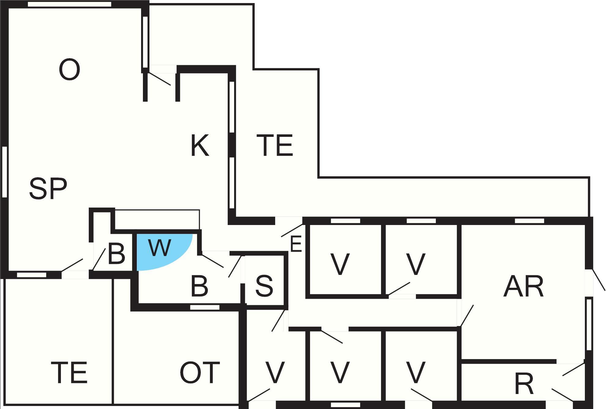 5 Soveværelser: (1DS)+(1DS)+(2S)+(2S)+(2S), barneseng