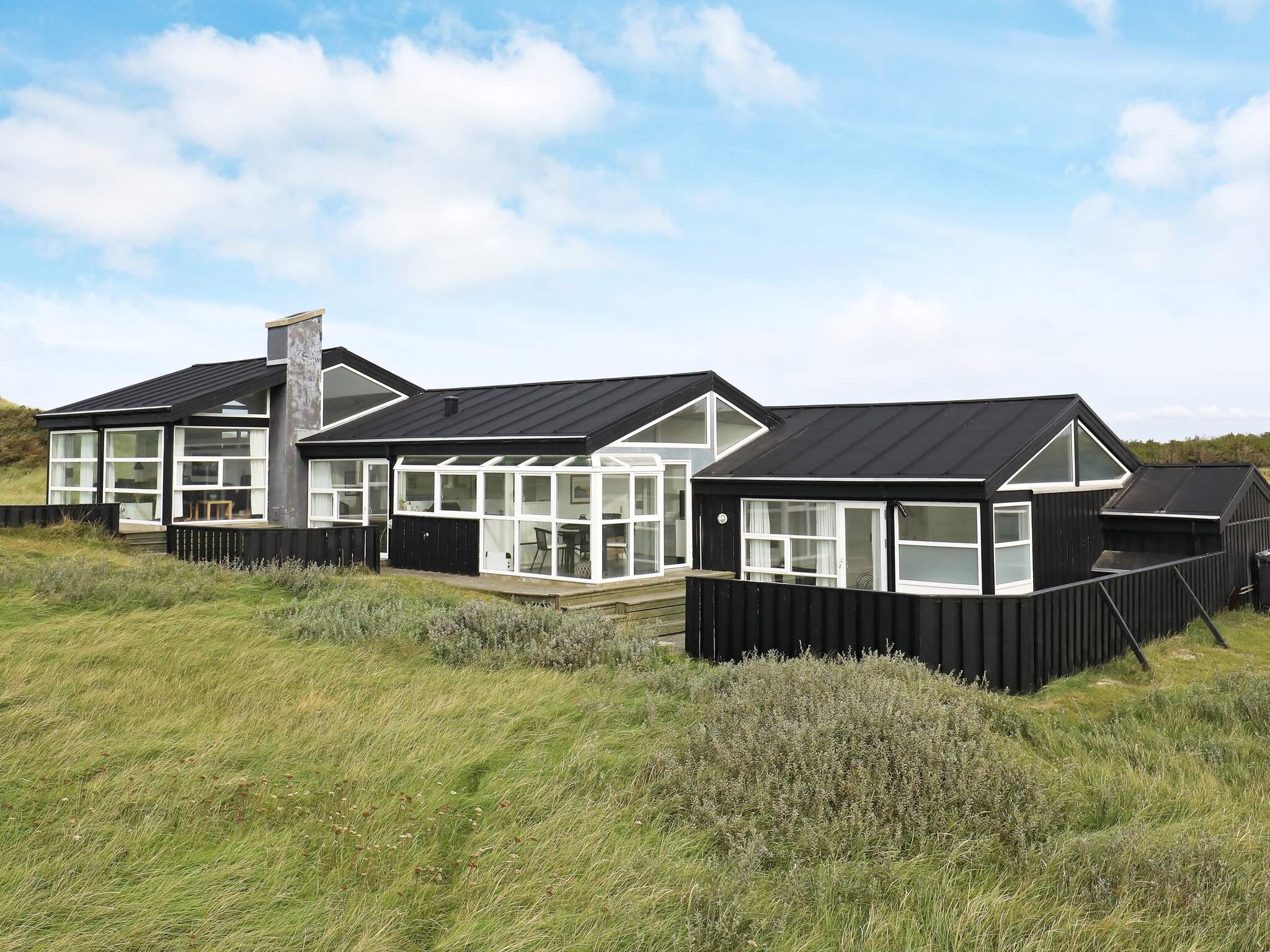 Stort sommerhus med swimmingpool, spabad og sauna beliggende i 1. række ved Rødhus brede sandstrand. Huset er på 193 m² og indrettet med 5 rummelige soveværelser, swimmingpool og spabad samt sauna og 2 fuldt udstyrede badeværelser, udestue og naturligvis et stort, kombineret køkken og opholdsareal. Der er tv og musikanlæg i både opholdsstue og udestue. Herfra er der adgang til husets terrasse, der indbyder til udendørs ophold. I udestuen kan I sidde i fred og ro og nyde udsigten over klitterne.