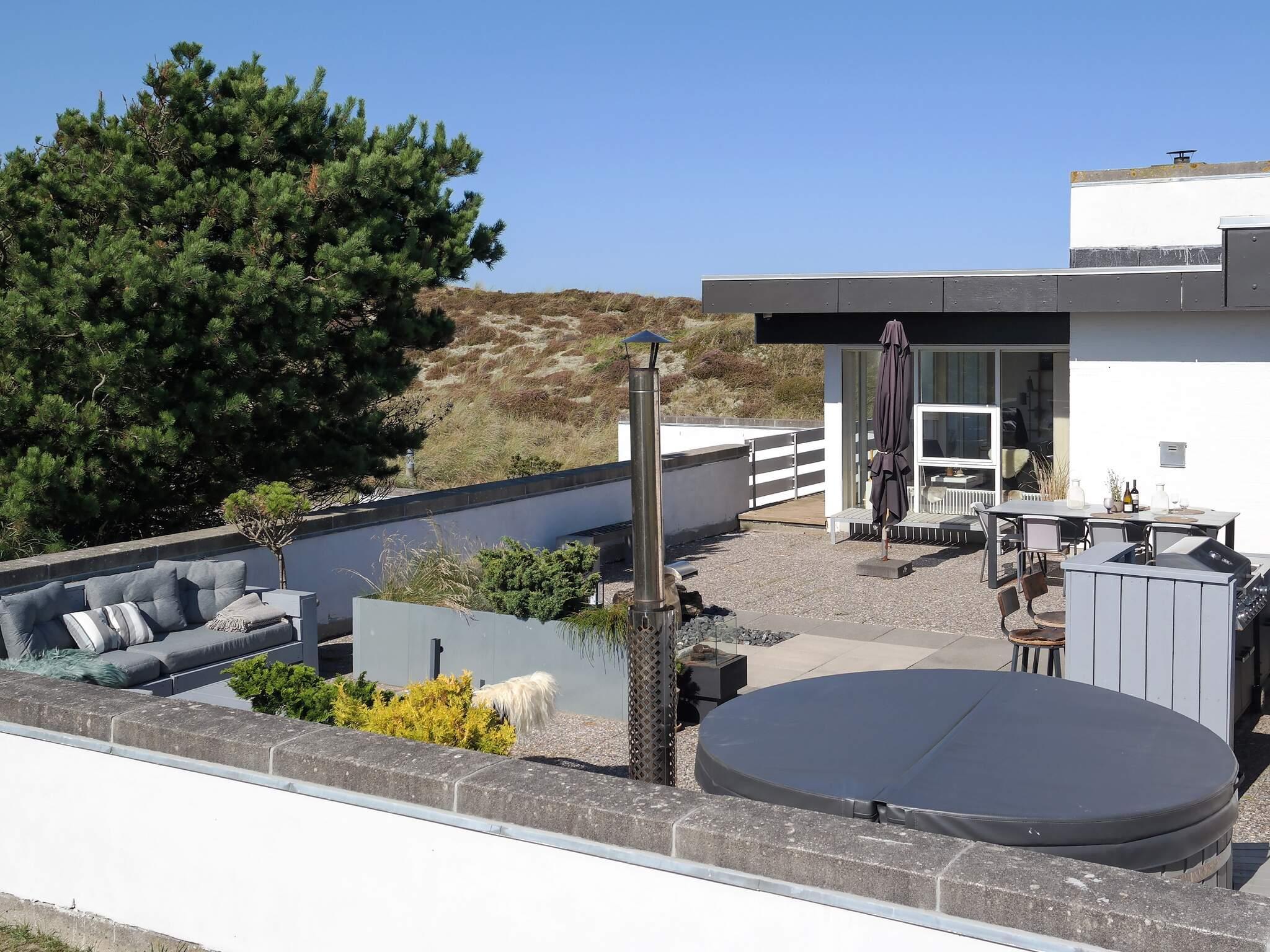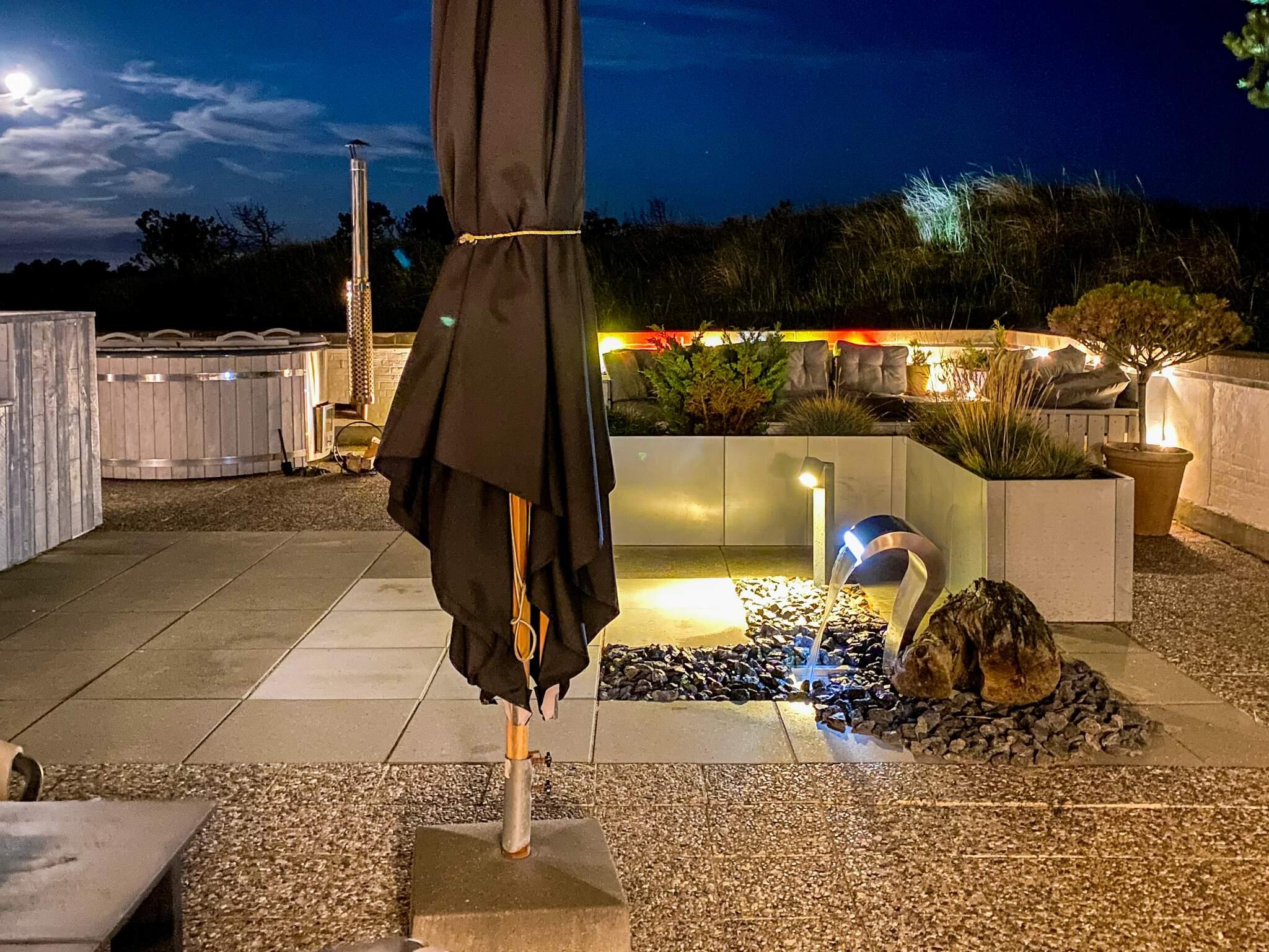 Udenfor venter en privat oase med sauna og luksuriøst vildmarksbad, hvor du kan nyde roen og varmen omgivet af naturens skønhed. Den store vestvendte terrasse er opdelt i hyggelige zoner, ideel til grillmiddage, solbadning eller et glas vin i solnedgangen. Den østvendte terrasse byder på morgensol og er perfekt til dagens første kop kaffe.