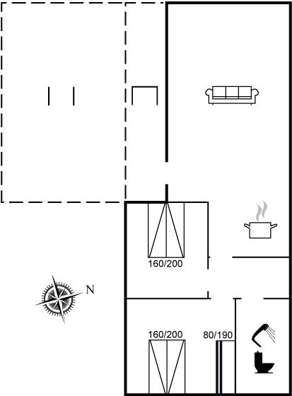 Der er i alt 2 soveværelser. Sovepladserne fordeler sig på: 4 sovepladser i dobbeltsenge. 2 sovepladser i køjeseng.