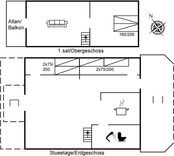 Der er i alt 3 soveværelser. Sovepladserne fordeler sig på: 2 sovepladser i dobbeltseng. 4 sovepladser i enkeltsenge. Derudover er der 1 stk. barneseng.
