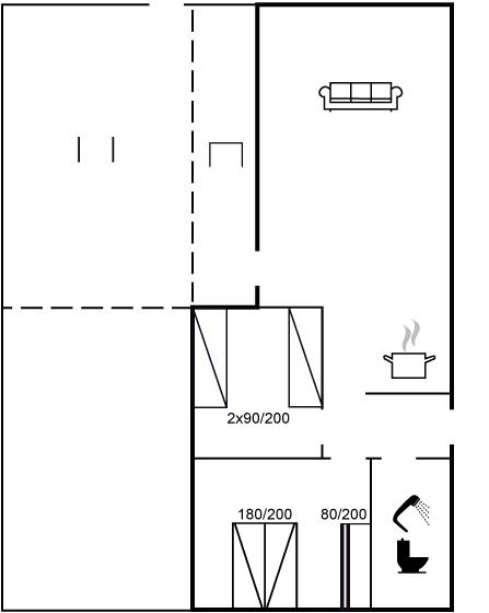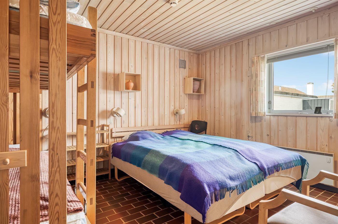 Der er i alt 2 soveværelser. Sovepladserne fordeler sig på: 2 sovepladser i dobbeltseng. 2 sovepladser i enkeltsenge. 2 sovepladser i køjeseng.